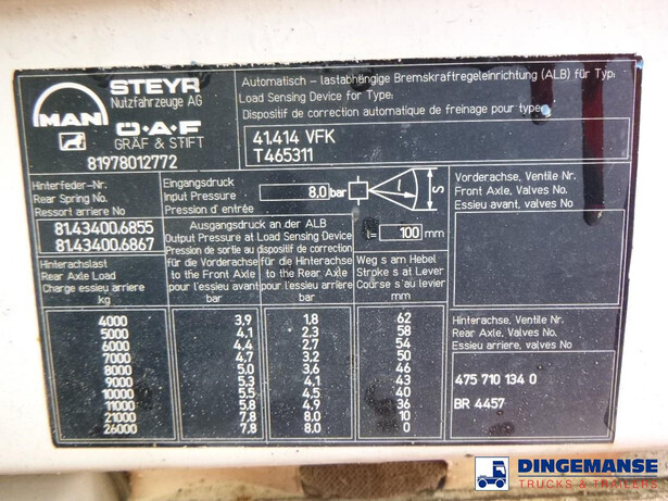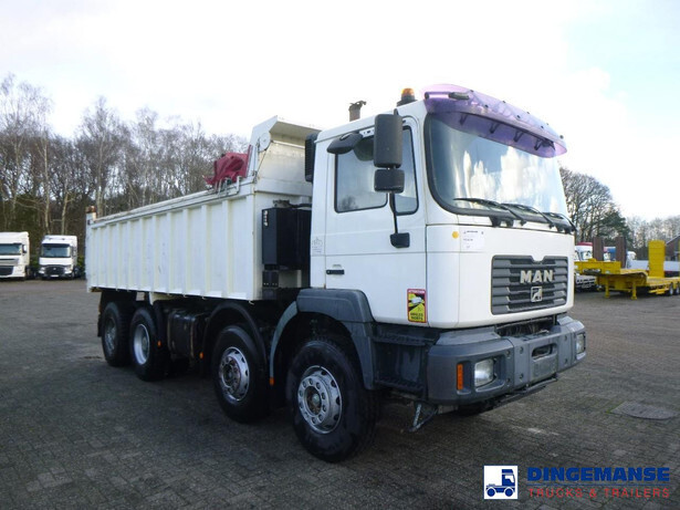 8x4 tipper truck, Euro 2, Manual gearbox, Full steel suspension, Day cabin, Analogue tachograph // ATM steel back tipper, Bulk capacity 20 m3, Box dimensions 605x250x130 cm, Loading height 135 cm, Shipment dimensions 845x250x325 cm