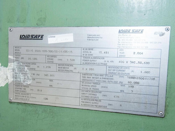 HYDRAULIC PRESS LOIRE SAFE mod. EDIMC 2000
