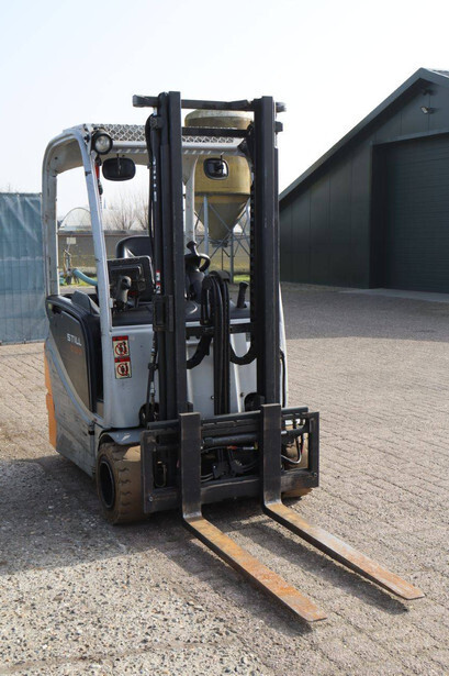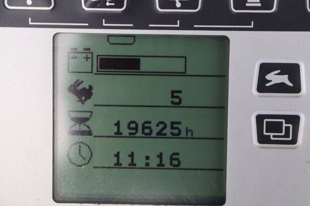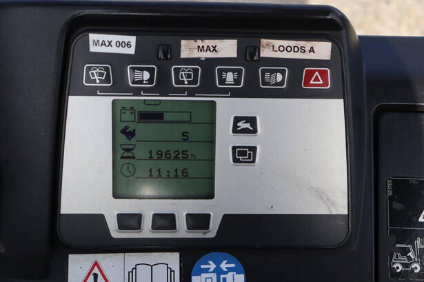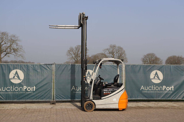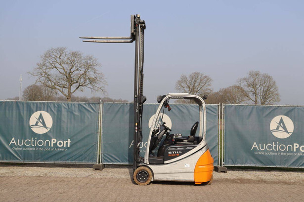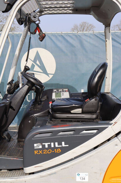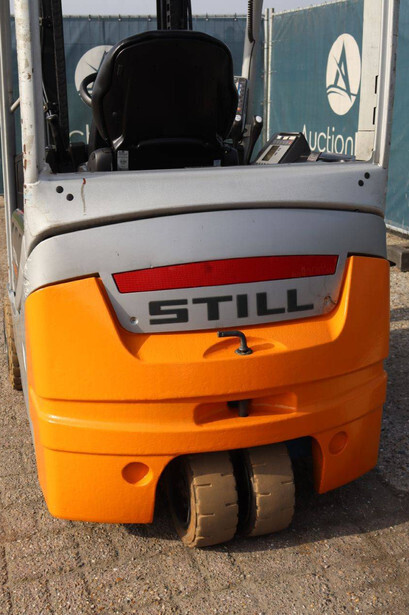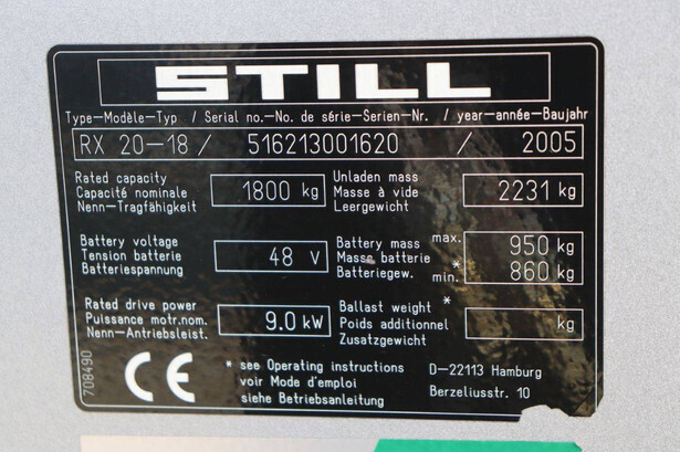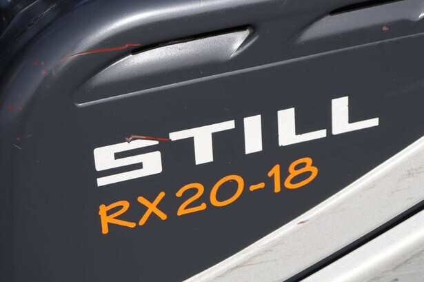Brand: Still Type: RX20-18 Serial number: 516213001620 Year of construction: 2005 Fuel: Electric Mast type: Duplex Sideshift: Yes Lifting capacity: 1800 kg Lifting height: 5430 mm Operating hours read: 19625 h Machine weight: 3181 kg Tires: Solid tires Color: orange