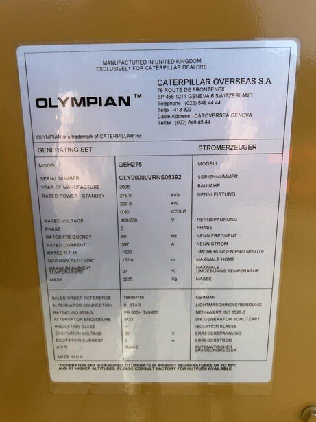 Functional Generator capacity: 275 kVA
