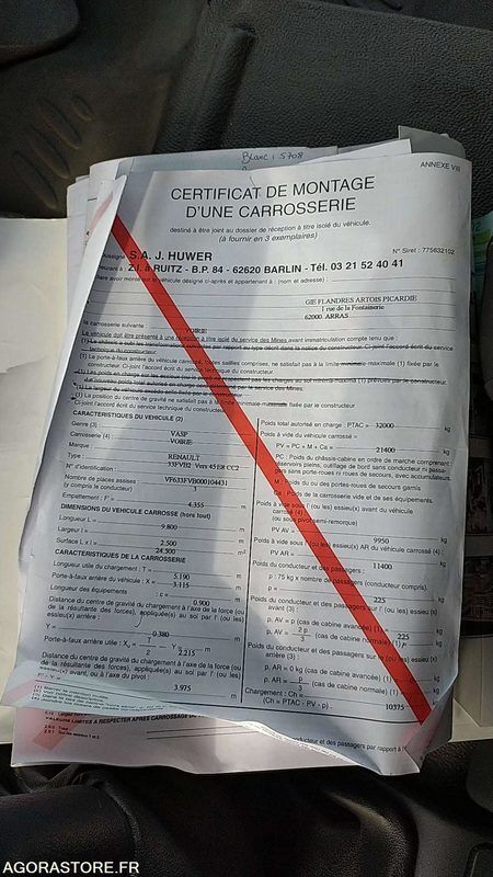 Renault KERAX Fuel: gas Axle 1 common tyre size: 315/80R22.5 FR: Type de véhicule POIDS LOURD Etat carrosserie: BE Général Etat intérieur: BE général usure normale, petit dommage sur panneau derrière siège conducteur Etat des pneus: BE Véhicule roulant Moteur tournant Un rapport d'inventaire est fourni dans la rubrique « documents » BE général bien suivi Ref No:LB49240 VIN: VF633FVB000104431