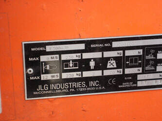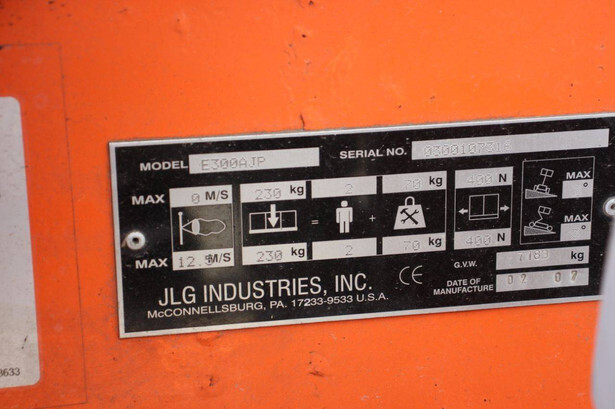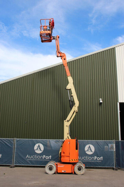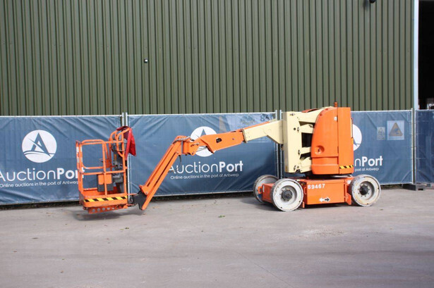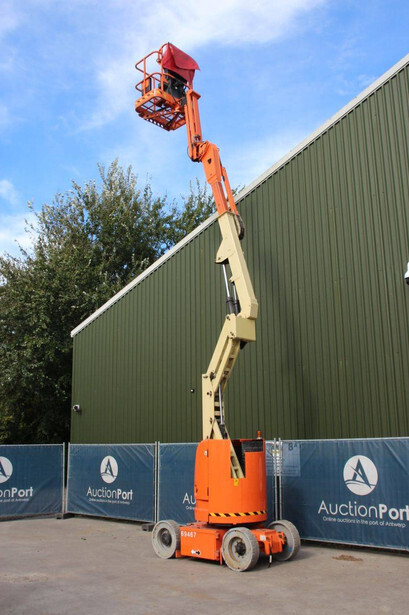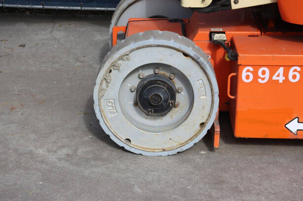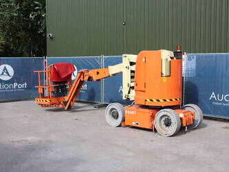Brand: JLG Type: E300AJP Serial number: 0300107316 Year of construction: 2007 Fuel: Electric Lifting capacity: 230 kg Working height: 11 m Reading operating hours: 1102 h Machine weight: 7183 kg Chassis: Wheels Type: Articulated boom lift Tires: Solid tires Color: orange