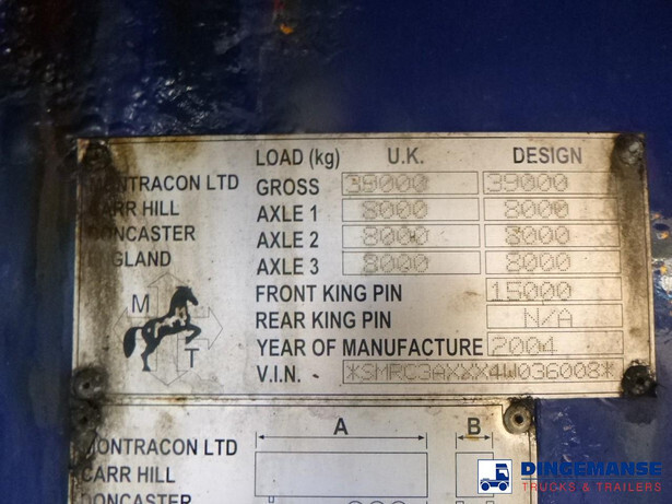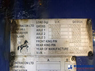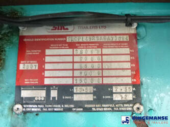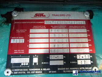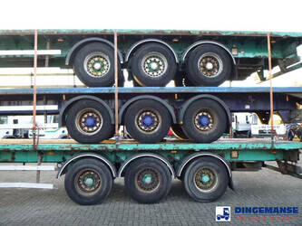 Stack of 3 platform trailers, Bottom unit: SDC, 2007, Chassis no. SDCPL45R3AGA73084 / Middle unit: Montracon, 2004, Chassis no. SMRC3AXXX4W036008 / Top unit: SDC, 2007, Chassis no. SDCPL45R3AGA73085 // ABS, ROR axles, Drum brakes, Air suspension, Tyres 385/65R22.5, Reinforced steel platform, Platform dimensions 1360x255 cm, Floor height 140 cm, Kingpin diameter 2 inches, Kingpin height 120 cm, Total shipment dimensions (stack): 1400x255x400 cm