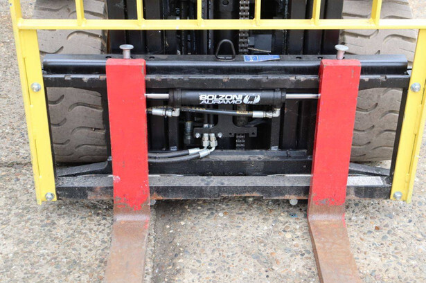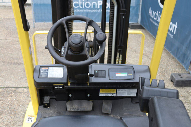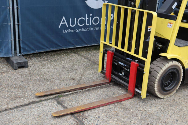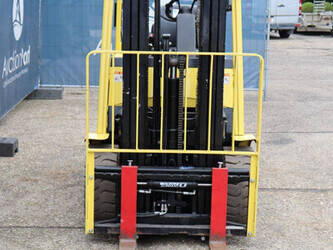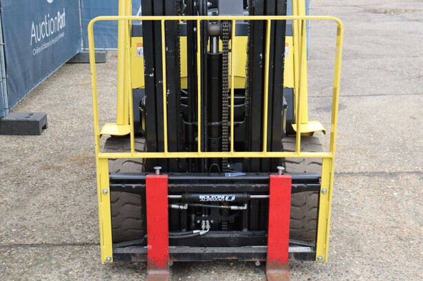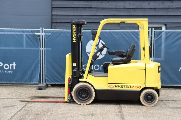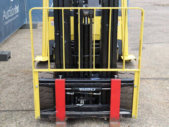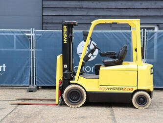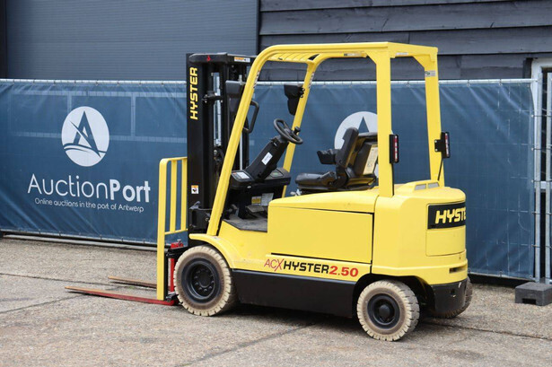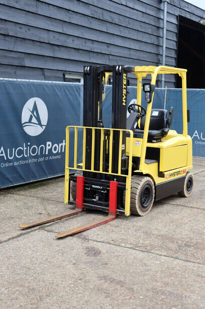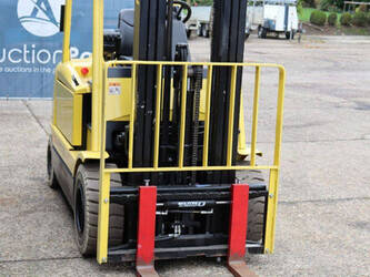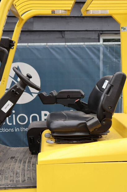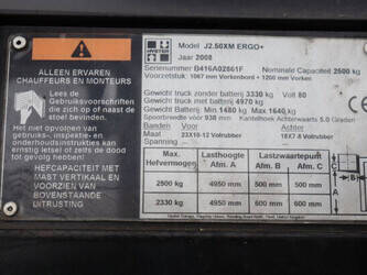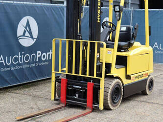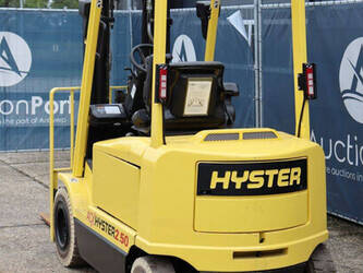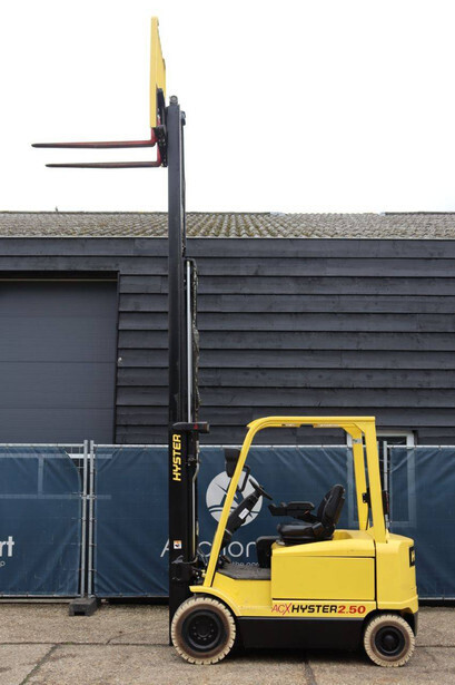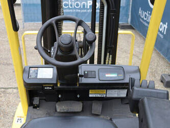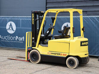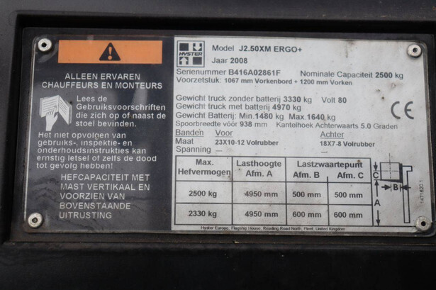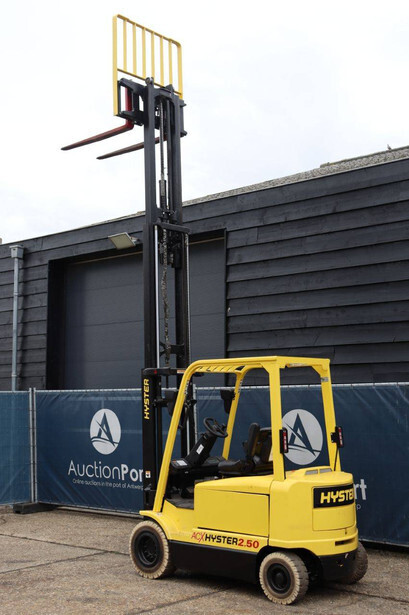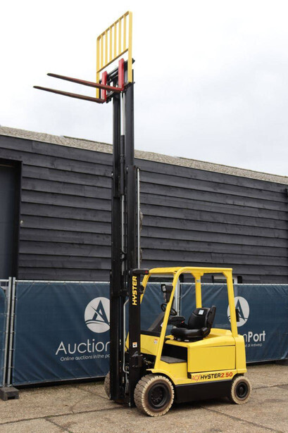 Brand: Hyster Type: J2.50XM Serial number: B416A02861F Year of construction: 2008 Fuel: Electric Mast type: Triplex Sideshift: Yes Lifting capacity: 2500 kg Lifting height: 4950 mm Operating hours read: 583 h Machine weight: 4970 kg Tires: Solid tires Color: yellow