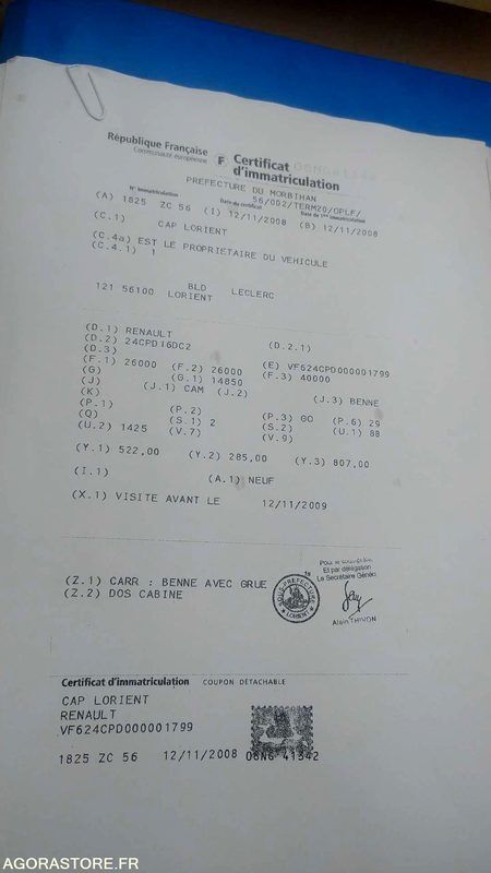 Renault PREMIUM Fuel: gas Axle 1 common tyre size: 315/80R22.5 FR: Etat carrosserie: Bon Etat intérieur: Bon Etat des pneus: Hs Véhicule non roulant Moteur non tournant Un rapport d'inventaire est fourni dans la rubrique « documents » Véhicule opérationnel jusqu'à sa mise à l'arrêt au dernier contrôle technique Contact infos et visite véhicule : Mr Hellio au 0290747463 Ref No:XA48984 VIN: VF624CPD000001799