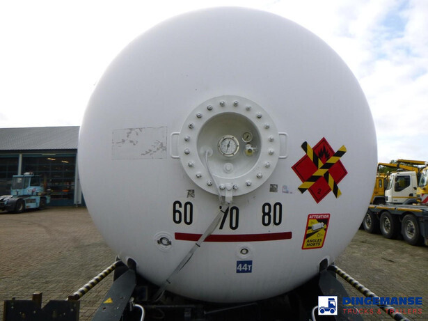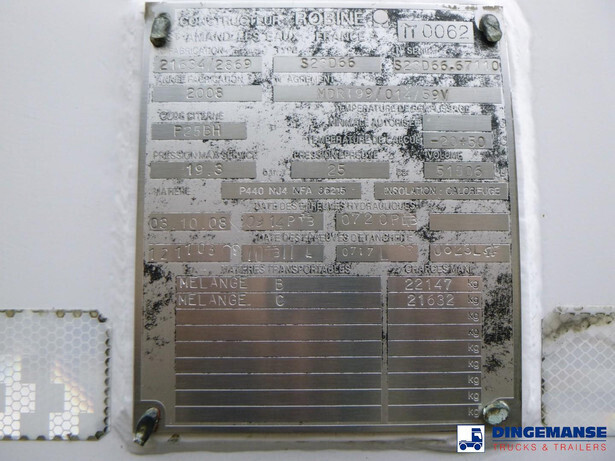 Robine steel gas (LPG) tank, capacity 51506 liter, 1 Compartment, Test pressure 25 bar, Max working pressure 19.3 bar, Year of construction 2008, Tank material code: P25BH // P 440 NJ4 NFA 36215, Air suspension, lift axle, Alloy wheels, ABS, Disc brakes, Mercedes axles, Shipment dimensions 1300x250x350 cm