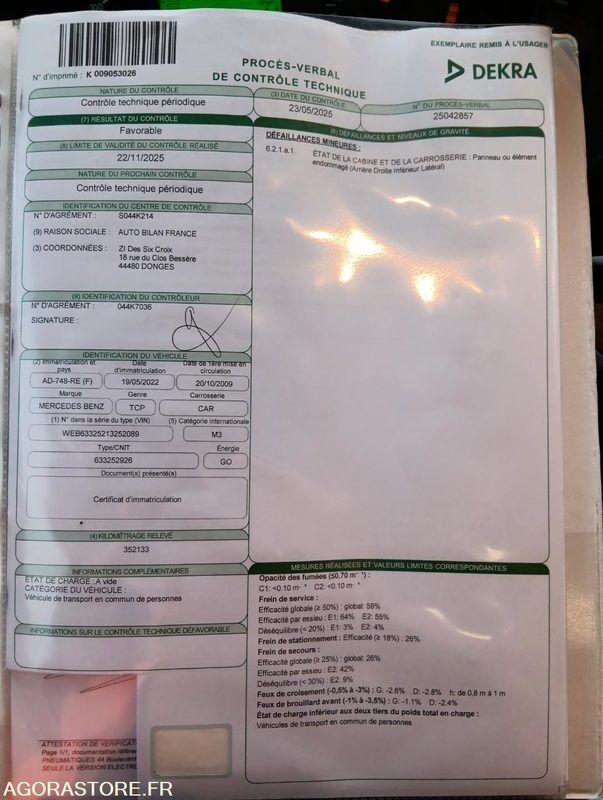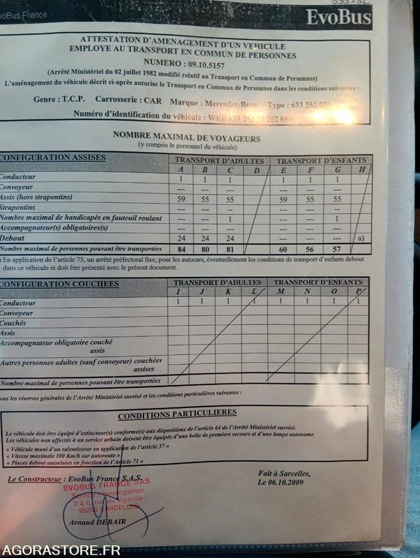 Mercedes-Benz INTOURO Axle 1 common tyre size: Pneus avants: inferieur à 6mm ; Pneus arrières: inférieur à 6mm Gearbox type: manual FR: Type de véhicule AUTOCAR IMPORTANT: VEHICULE ROULANT(Véhicule à venir récupérer entre le 22/12 et le 31/12 obligatoirement) Etat carrosserie: MOYEN Etat des pneus: Pneus avants: inferieur à 6mm ; Pneus arrières: inférieur à 6mm Ceinture: Avec ceintures Climatisation: Chauffage uniquement Toilettes: Sans toilettes Etat moteur boite pont: Etat moteur : Moyen ; Etat mécanique : Moyen Webasto: Chauffage uniquement Dernier passage aux mines: 45939 Ethylotest: Sans éthylotest Etat Général : MOYEN (Véhicule à venir récupérer entre le 22/12 et le 31/12 obligatoirement Ref No:KV48508 VIN: Immat : AD-801-RE