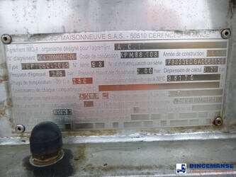 Insulated Maisonneuve stainless steel bitumen tank, Capacity 35170 liters, 1 Compartment, Tank material code EN 10028.7, Test pressure 2.65 bar, Max working pressure 2.0 bar // Air suspension, Lift axle, Alloy wheels, Mercedes axles, ABS, Disc brakes, Shipment dimensions 1185x250x360 cm