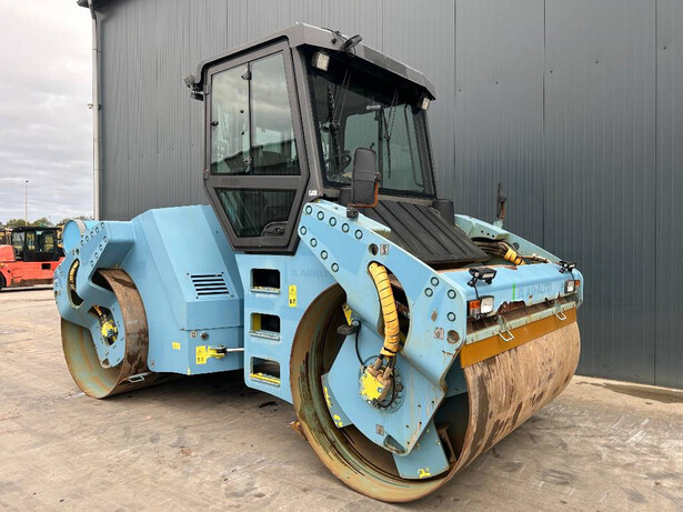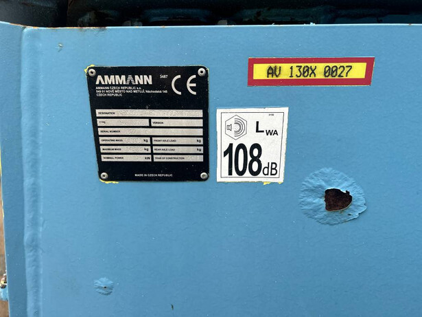 The Ammann AV130X is a high-performance vibrating roller featuring a Cummins QSB4.5 engine with 97kW power, designed for reliability and efficiency. Manufactured in 2011, it has 5819 genuine hours and is in excellent condition, adhering to EPA and CE standards. The machine offers a 2.10m drum width with both drums vibrating, enhancing compaction efficiency. Equipped with an EROPS cabin, a moveable seat, a water sprinkler system, and a backup alarm for operator comfort and safety. The AM/FM radio and backup alarm enhance the user experience, making it suitable for various construction projects.