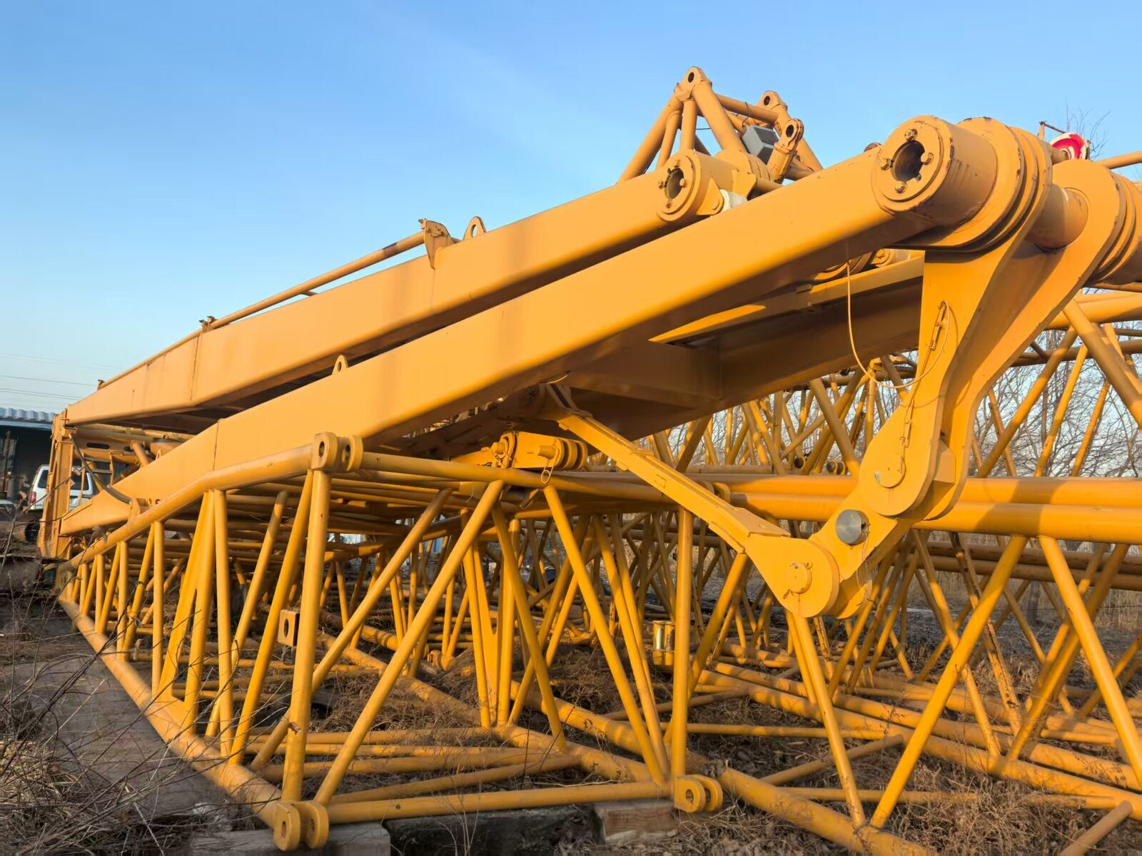 A 7-section elliptical section crane arm, equipped with a single cylinder pin telescopic mechanism, with a full extension arm length of 84m. At the same time, this product has multiple optional devices, including a 63m fixed extended auxiliary arm and a 95m variable amplitude auxiliary arm, which expands the working space of the crane and enables installation projects with high height requirements, such as wind power projects; Improve the force bearing device of the crane arm, multiply the length of the auxiliary arm of the crane, increase the lifting height by 712m, and improve the lifting performance by 1260%.