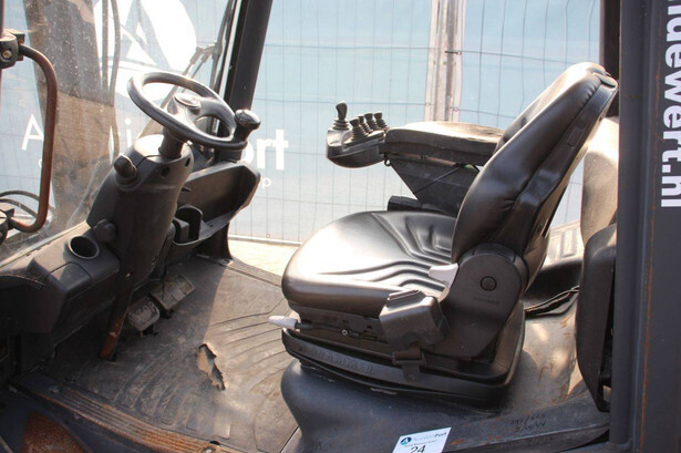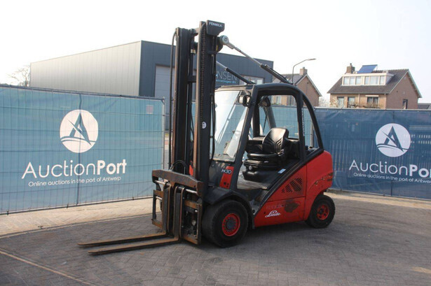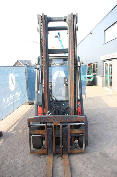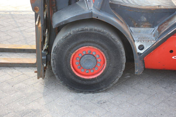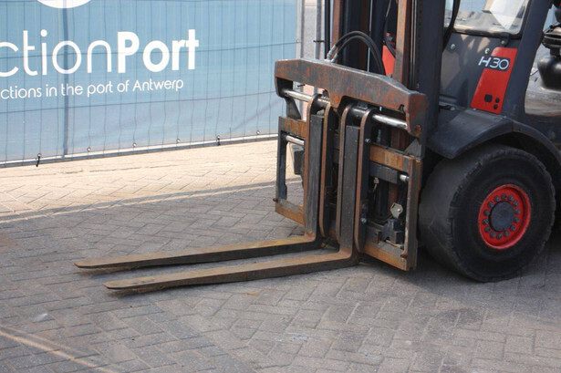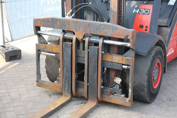 Brand: Linde Type: H30D-01 Year of construction: 2012 Fuel: Diesel Mast type: Duplex Sideshift: Yes Lifting capacity: 3000 kg Lifting height: 7000 mm Recorded operating hours: 9379 h Tires: Solid tires Color: red