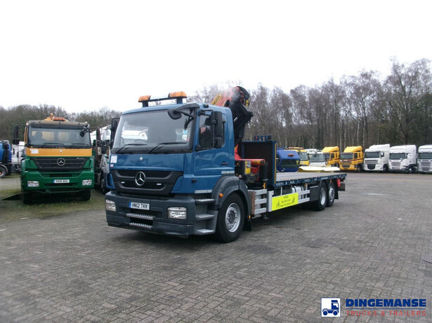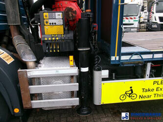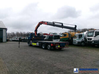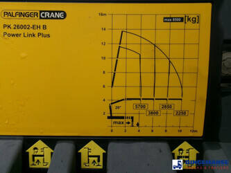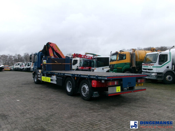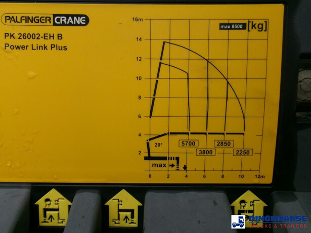 NON-DUTY FREE, REQUIRES CUSTOMS CLEARANCE // RIGHT-HAND DRIVE // Palfinger PK26002-EH loading crane, Max. lifting capacities: 5700 kg at 4.2 m, 3800 kg at 6.0 m, 2850 kg at 8.0 m, 2250 kg at 10 m, Maz. horizontal hydraulic reach: 10 meters, 2 Support legs, Hook, Radio remote control, Year of manufacture 2012 // Truck 6x2, Steel suspension front / Air suspension rear, Manual gearbox, Diff. lock, Euro 5, AdBlue, Rear axle lift, Day cabin, Steel platform with wood floor, 20-ft twistlocks, Lashing rings, Floor height 115 cm, Platform surface 700 x 255 cm, Rear- and side-view cameras, Shipment dimensions 1050x255x350 cm