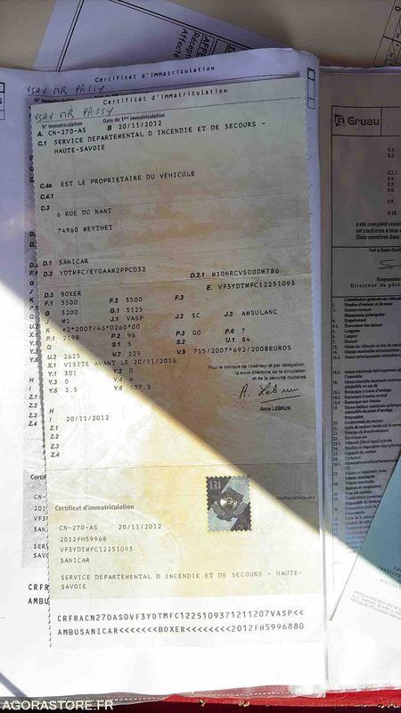 Peugeot BOXER Color: red Power: 131 Engine volume: 2198 Fuel: diesel Gearbox type: manual Overall height: 2.25 Overall length: 5.41 Overall width: 2.05 FR: Type de véhicule AMBULANCE