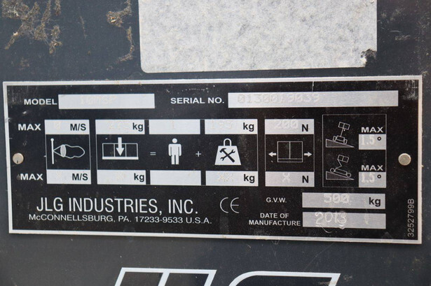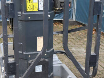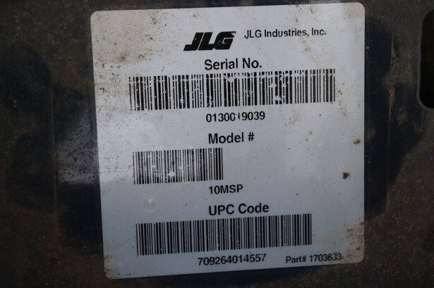 Brand: JLG Type: 10MSP Serial number: 0130019039 Year of construction: 2013 Fuel: Electric Lifting capacity: 275 kg Working altitude: 5050 m Machine weight: 500 kg Chassis: Wheels Type: Mast lift Tires: Non-marking tires Color: gray