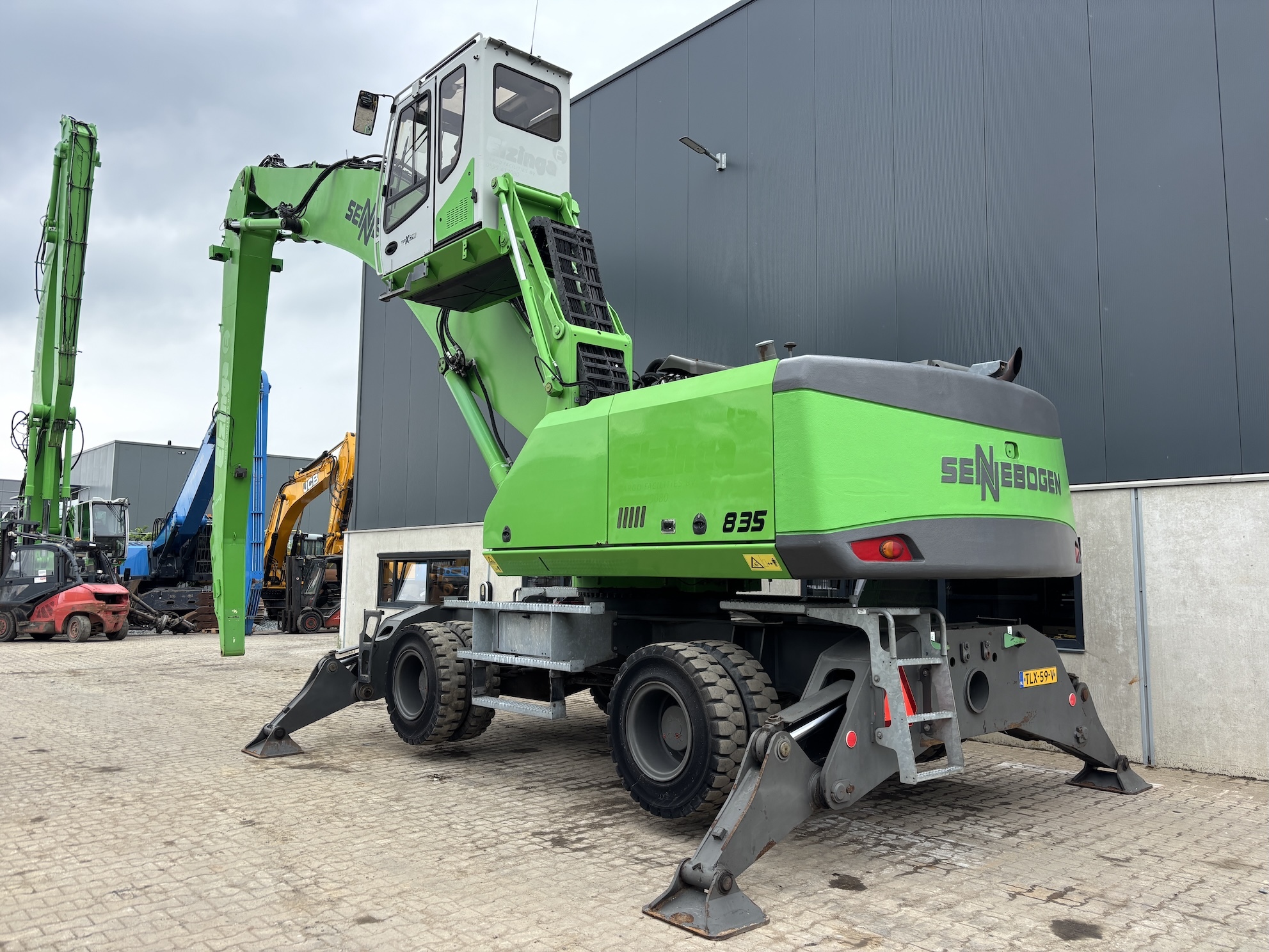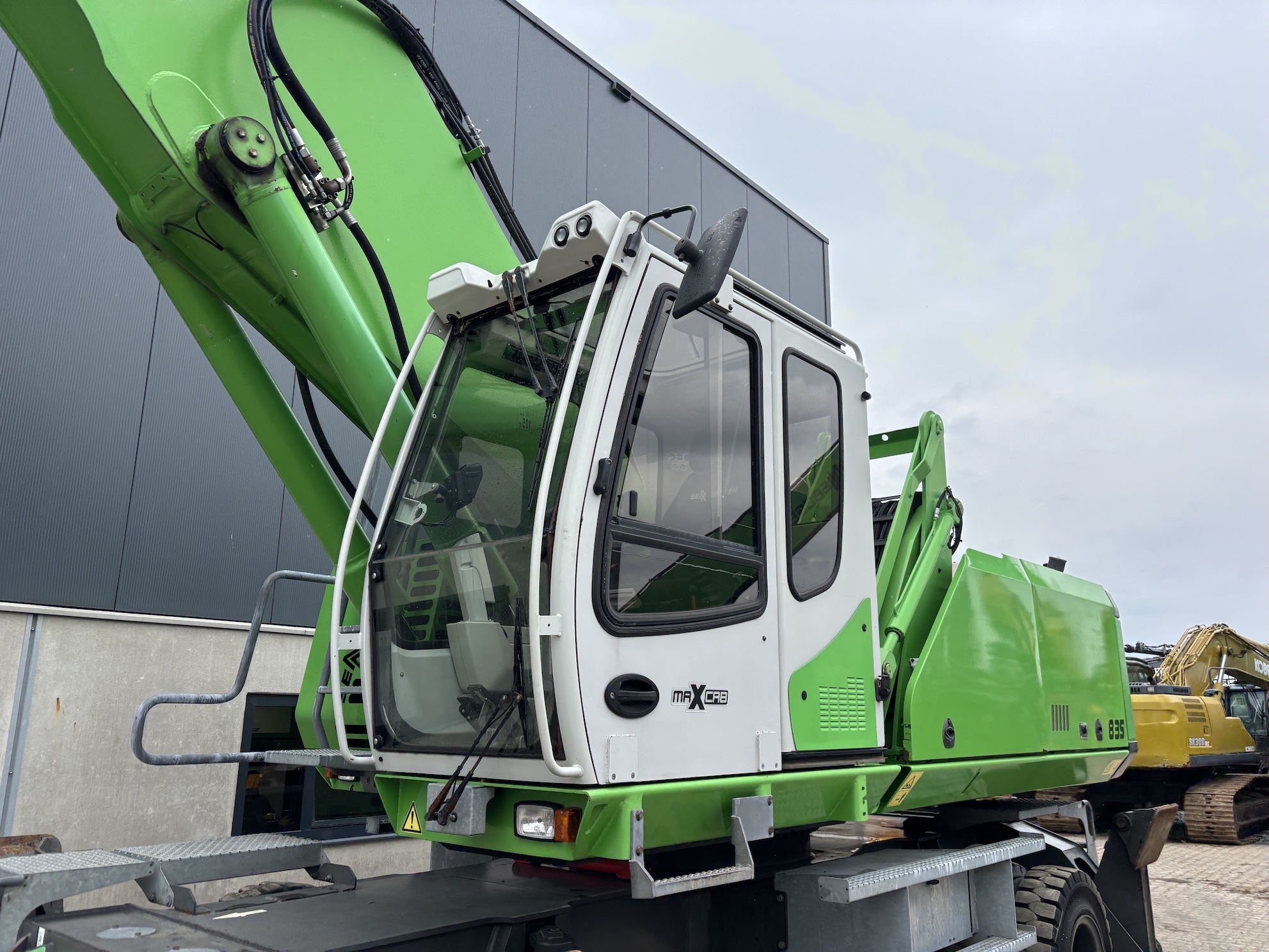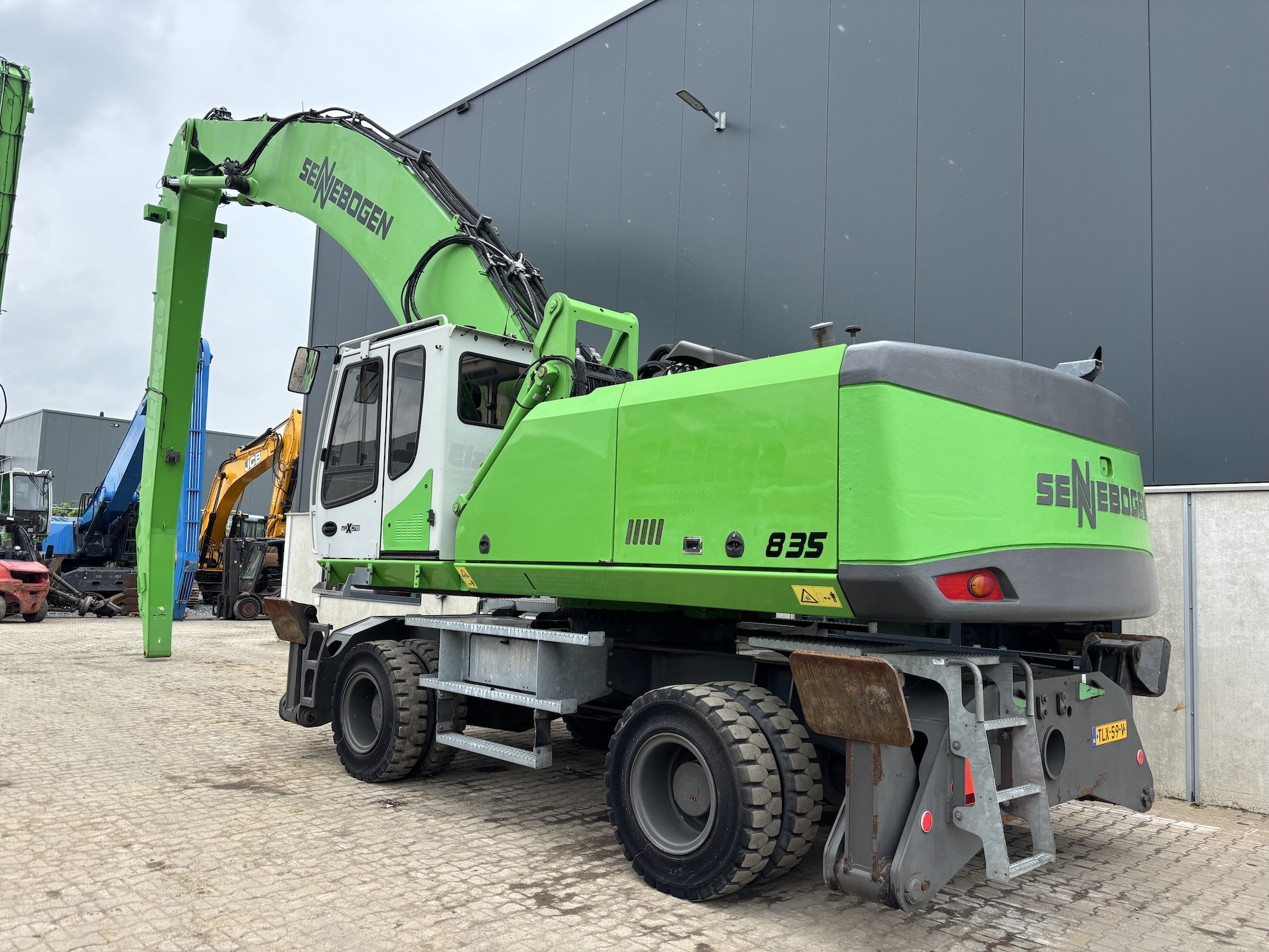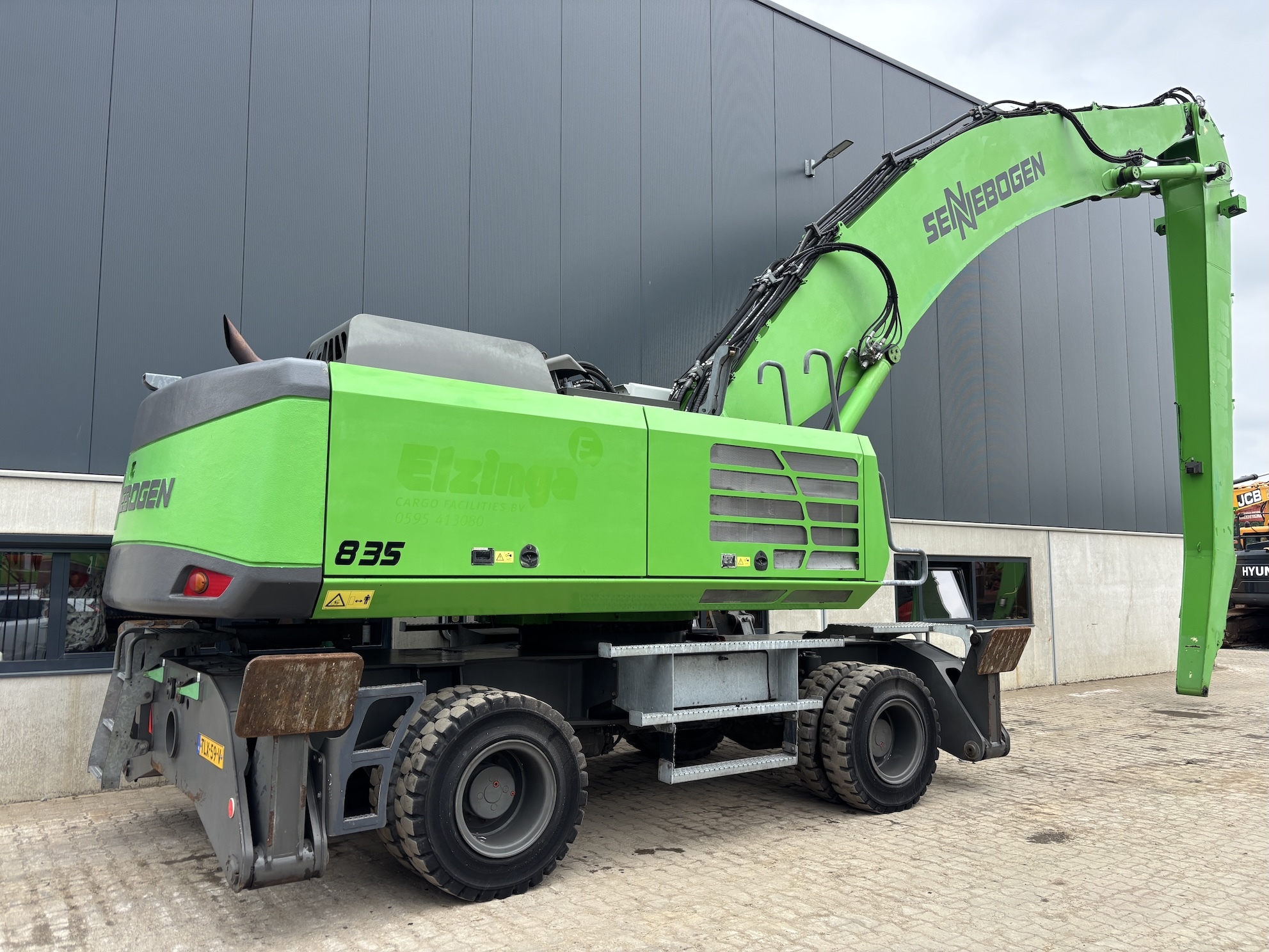 Sennebogen 835E M Weight 45500 Sennebogen 835E with a 6 cilinder water cooled turbo charged Cummins QSL9 engine (224Kw stage 3b engine). Dutch machine with 14029 hours on the service meter. MP41D undercarriage, 10.8 meter boom, 7.9 meter stick which results in B18 reach. Machine includes central lubrication, full rubber tyres, 4 stabilisers, 3 cameras for all round view, joysticks steering, additional books, airco, radio etc.Machine is in good working condition. Tires about 75%, no cracks or plates in on the boom, no excessive play. Really tidy machine, mostly original paint. For more information please contact us.