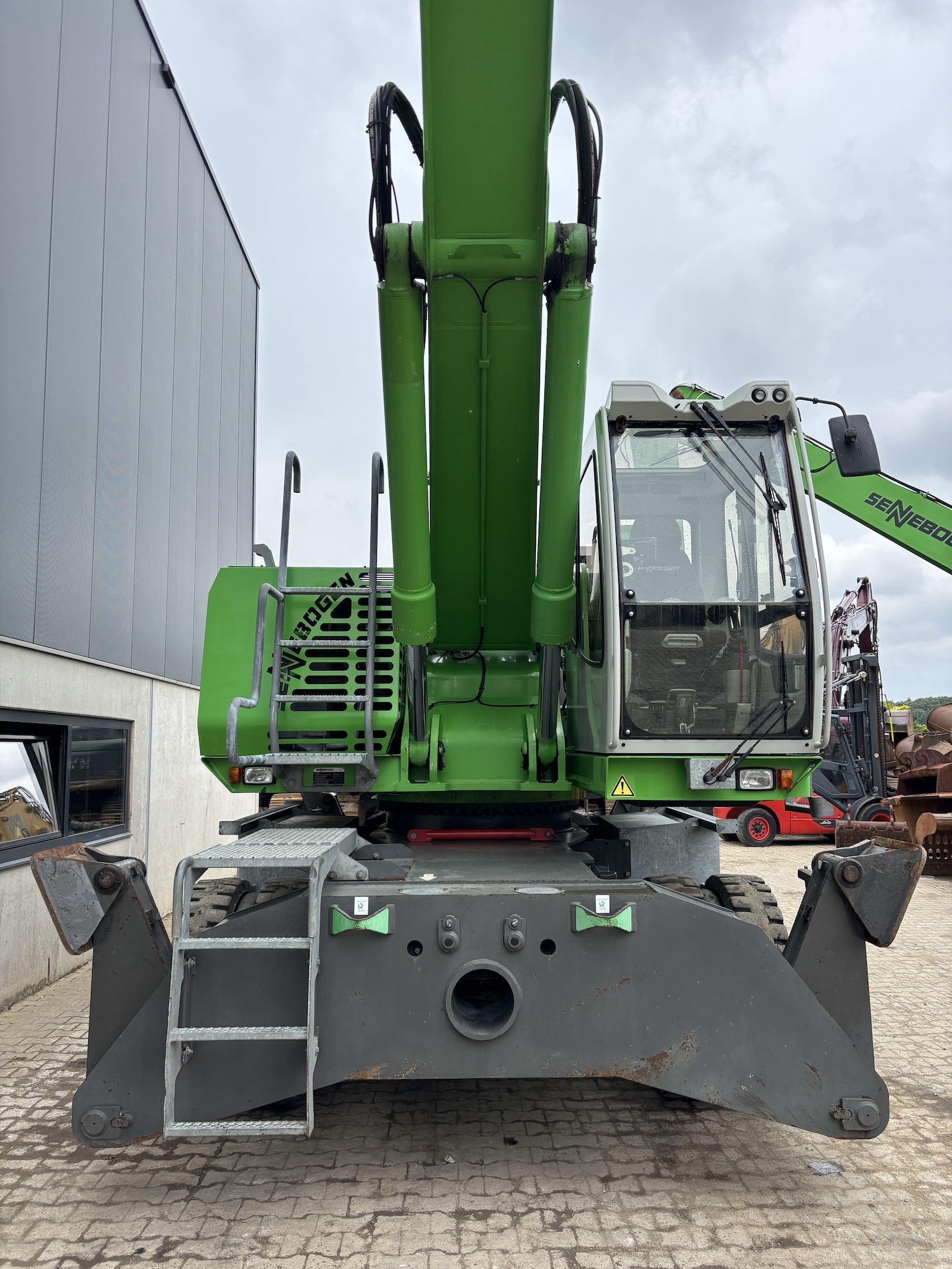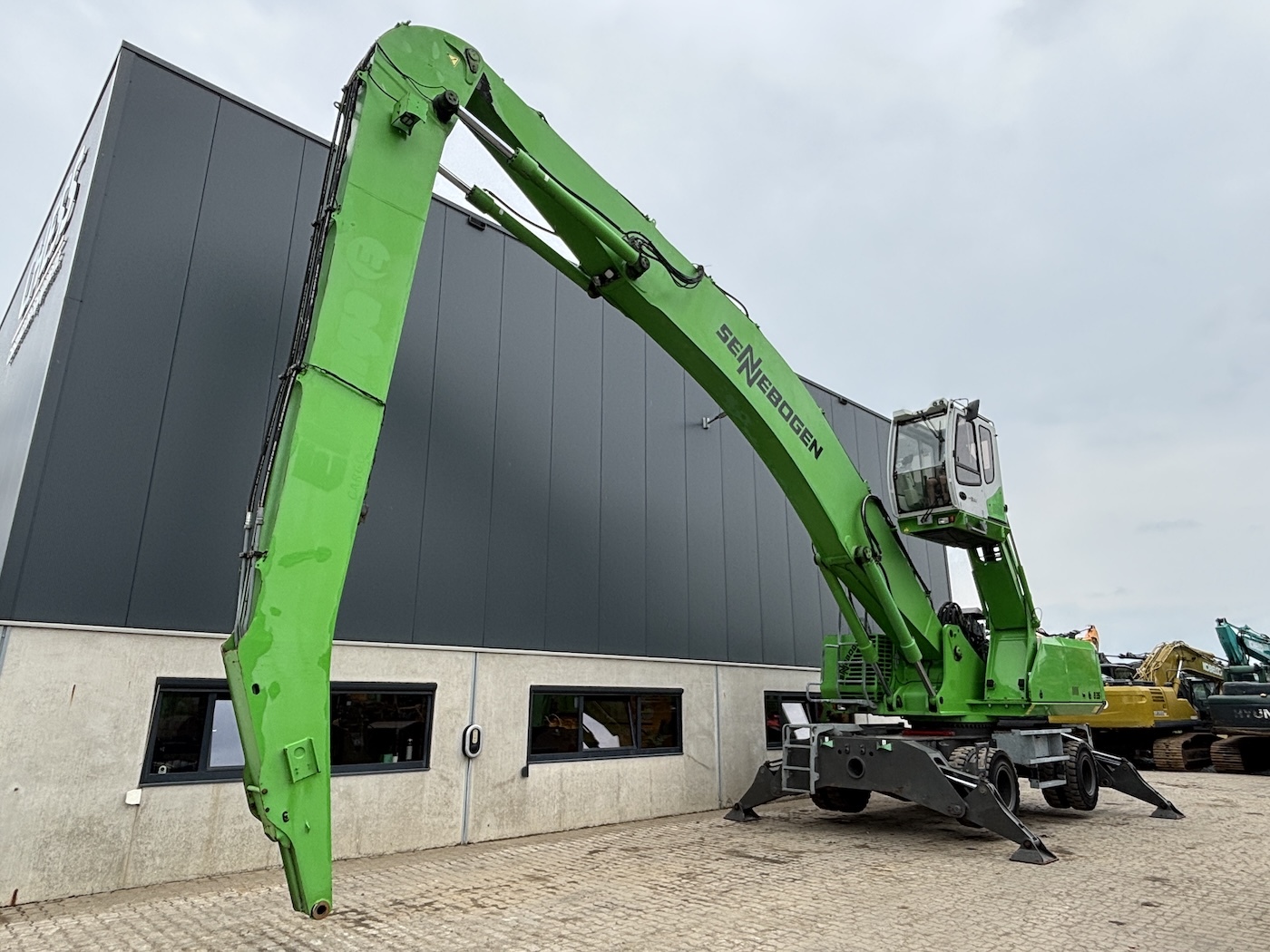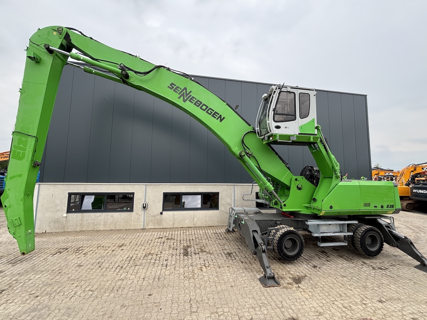 Sennebogen 835E M Weight 45500 Sennebogen 835E with a 6 cilinder water cooled turbo charged Cummins QSL9 engine (224Kw stage 3b engine). Dutch machine with 14029 hours on the service meter. MP41D undercarriage, 10.8 meter boom, 7.9 meter stick which results in B18 reach. Machine includes central lubrication, full rubber tyres, 4 stabilisers, 3 cameras for all round view, joysticks steering, additional books, airco, radio etc.Machine is in good working condition. Tires about 75%, no cracks or plates in on the boom, no excessive play. Really tidy machine, mostly original paint. For more information please contact us.