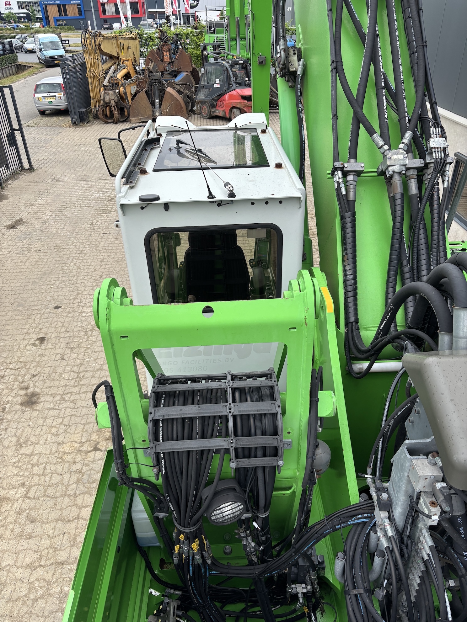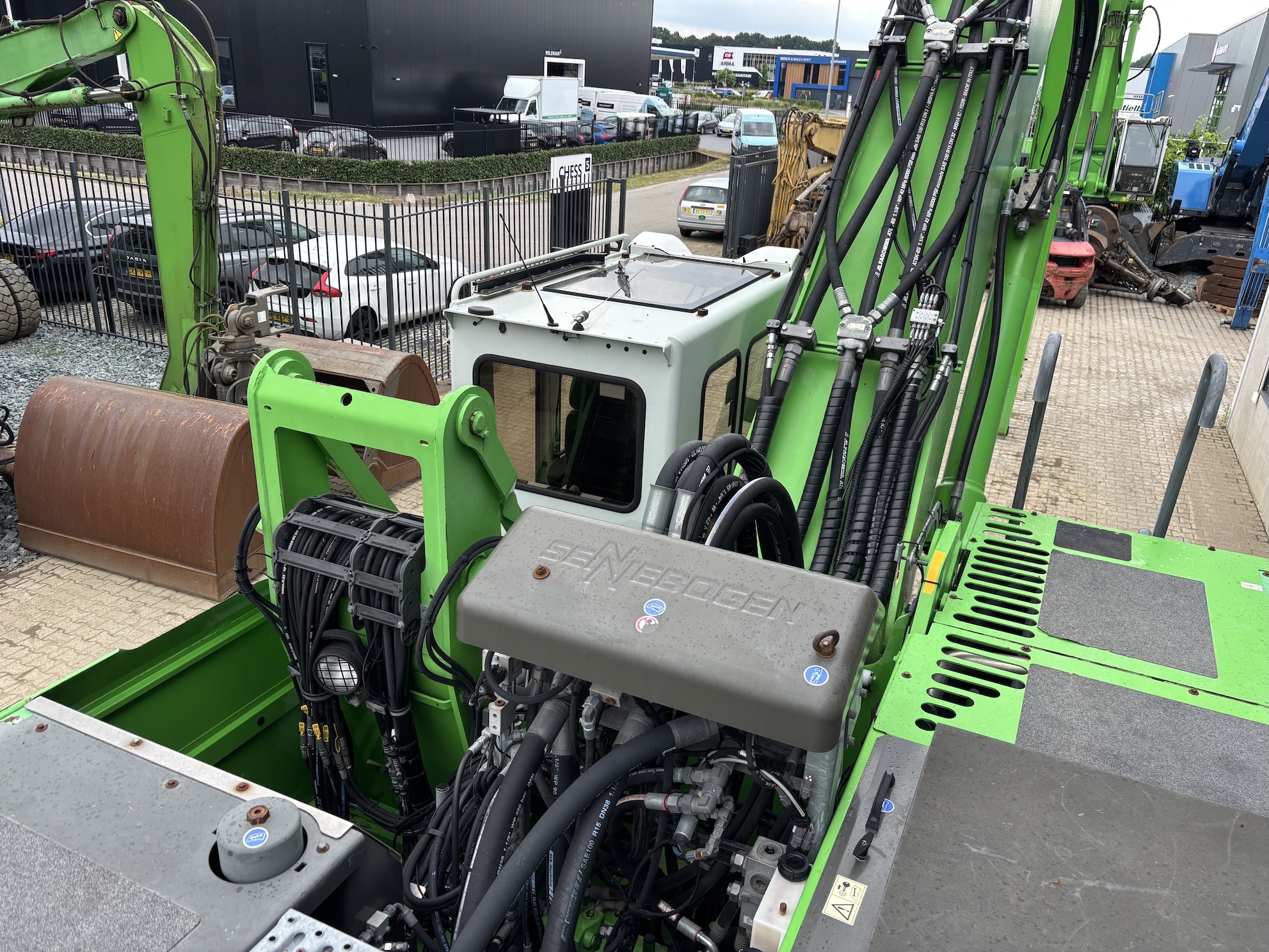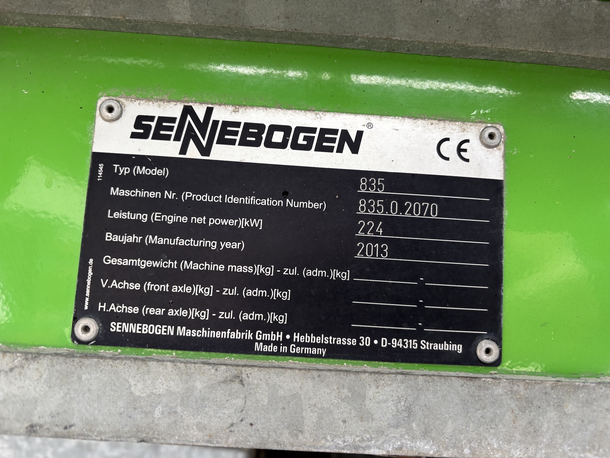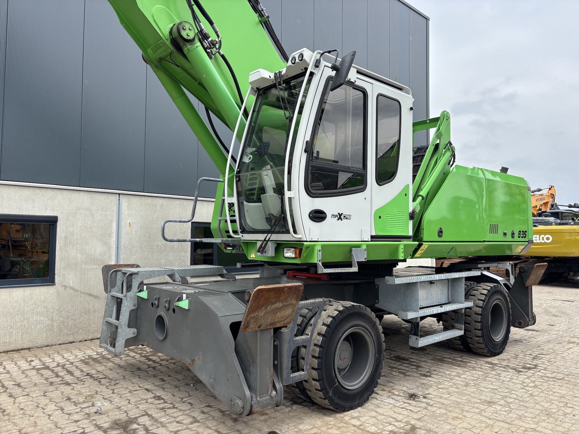 Sennebogen 835E M Weight 45500 Sennebogen 835E with a 6 cilinder water cooled turbo charged Cummins QSL9 engine (224Kw stage 3b engine). Dutch machine with 14029 hours on the service meter. MP41D undercarriage, 10.8 meter boom, 7.9 meter stick which results in B18 reach. Machine includes central lubrication, full rubber tyres, 4 stabilisers, 3 cameras for all round view, joysticks steering, additional books, airco, radio etc.Machine is in good working condition. Tires about 75%, no cracks or plates in on the boom, no excessive play. Really tidy machine, mostly original paint. For more information please contact us.