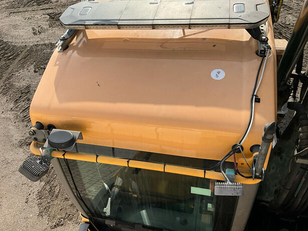Équipé de : Climatisation, caméra de recul, rotateurs inclinables, graissage centralisé, attache rapide hydraulique, lame de remblayage, support BM, chauffage webasto, attelage de remorque et système hydraulique de remorque.