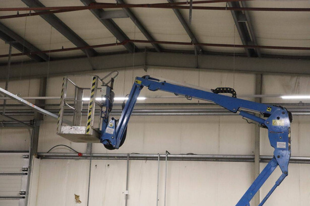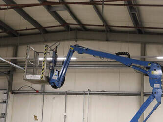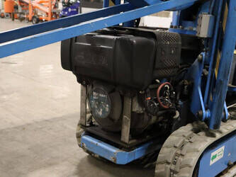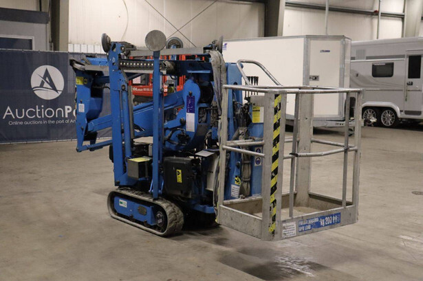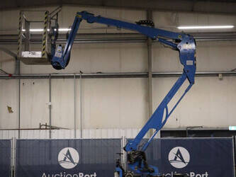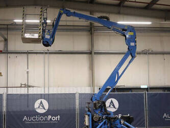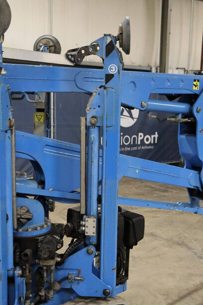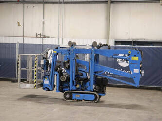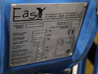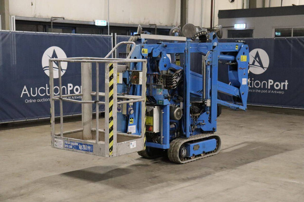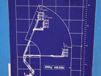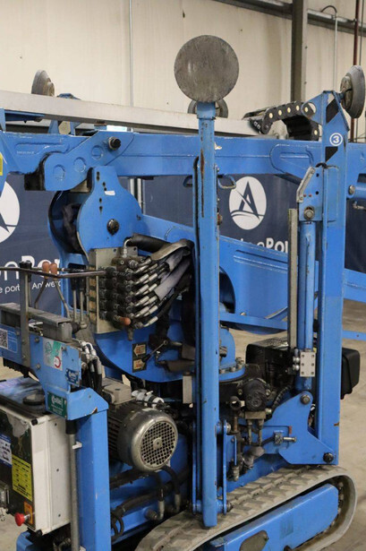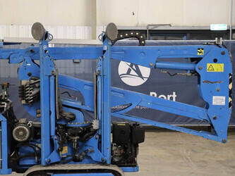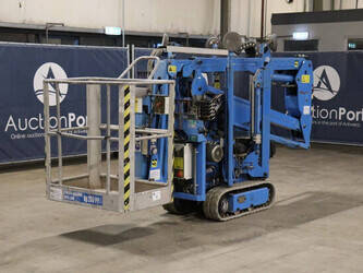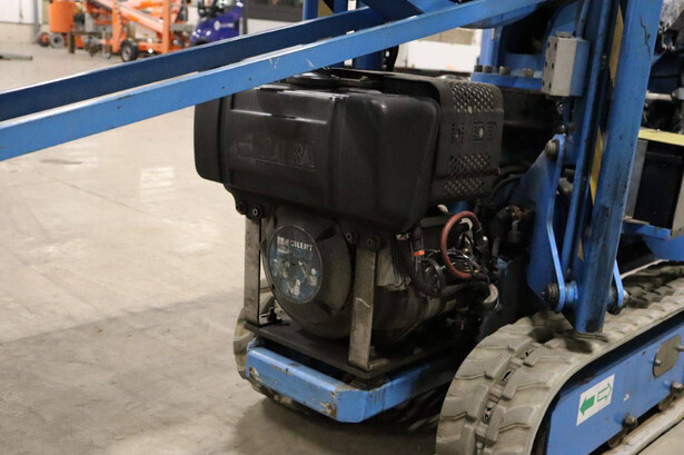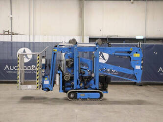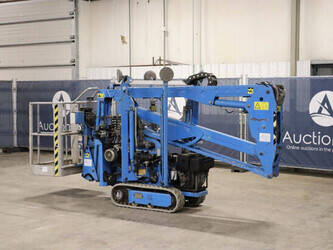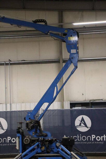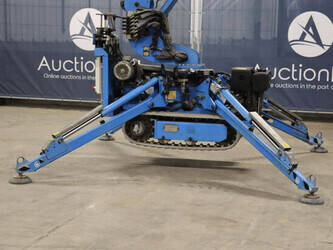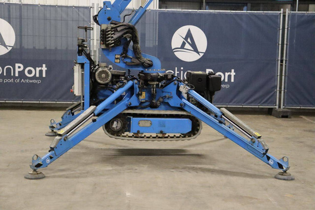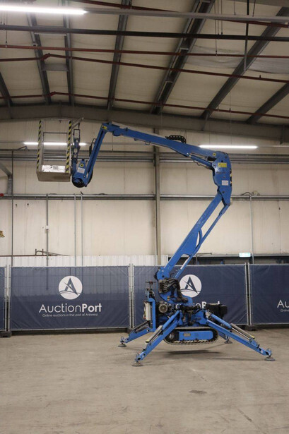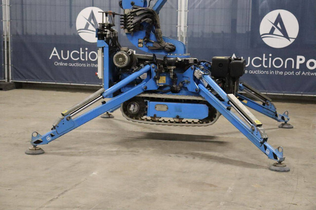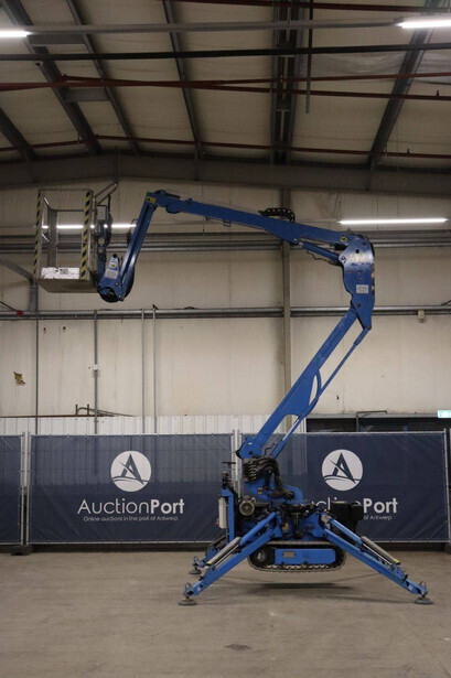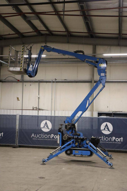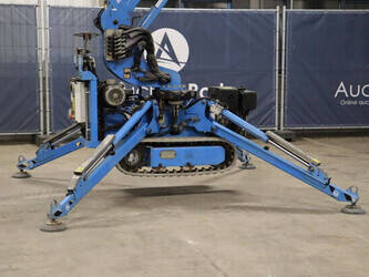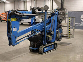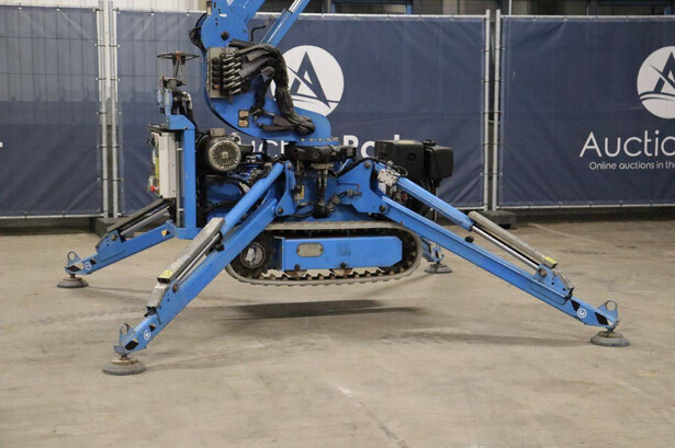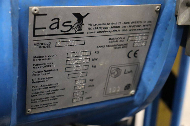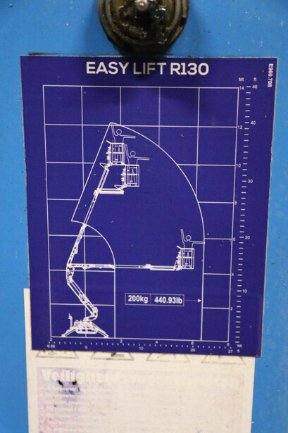 Brand: Easylift Type: R130 Serial number: E1659 Year of construction: 2014 Fuel: Diesel Lifting capacity: 200 kg Engine: Hatz Working height: 12.2 m Operating hours read: 4309 h Machine weight: 1700 kg Running gear: Tracks Type: Spider lift Caterpillars: Non-marking caterpillars Color: blue
