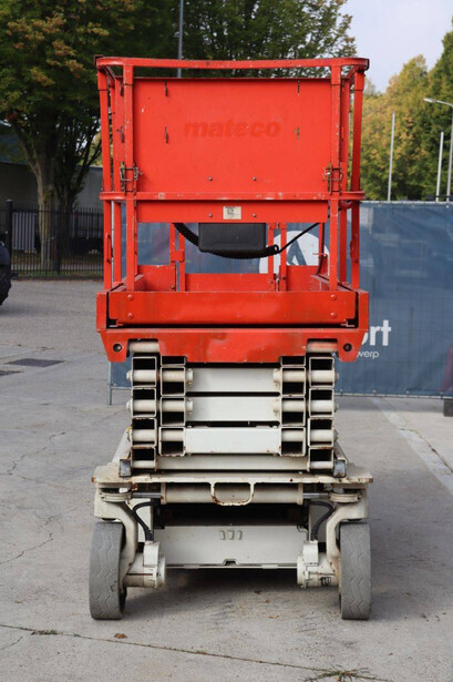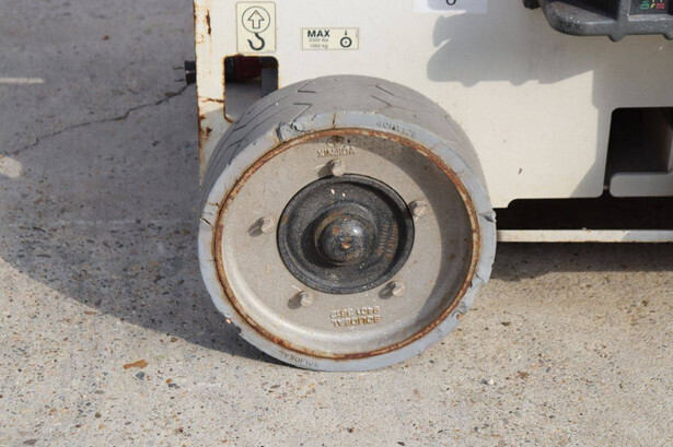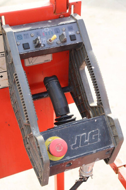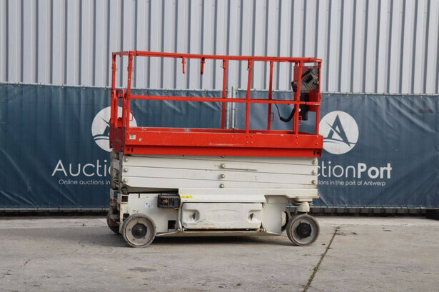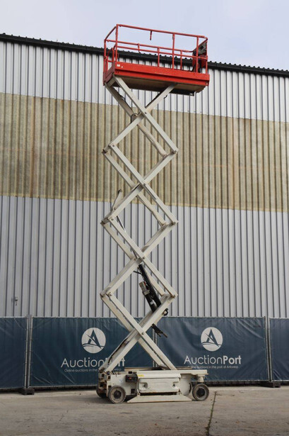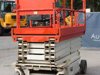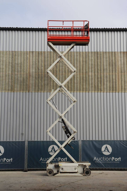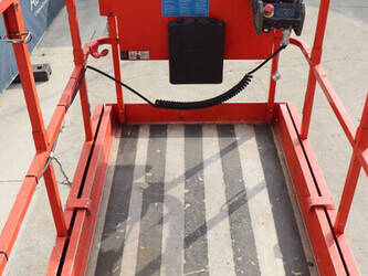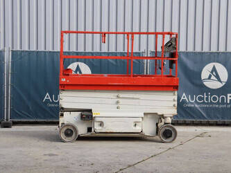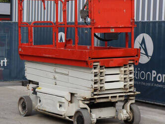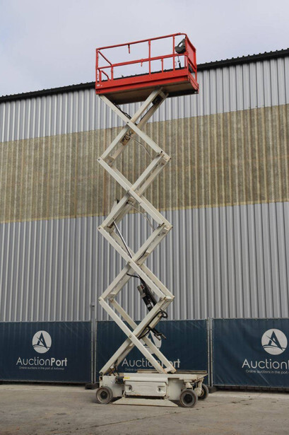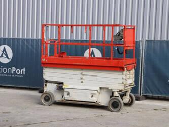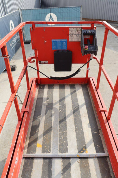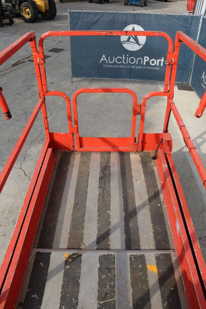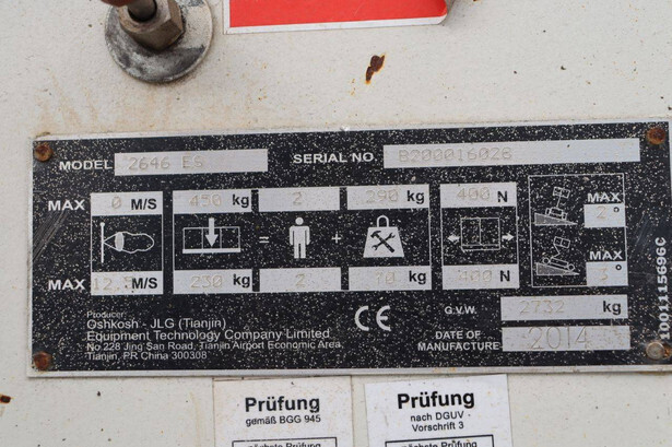 Brand: JLG Type: 2646 ES Serial number: B200016028 Year of construction: 2014 Fuel: Electric Lifting capacity: 450 kg Working height: 9.92 m Operating hours read: 459 h Machine weight: 2732 kg Chassis: Wheels Type: Scissor lift Tires: Non-marking tires Color: red