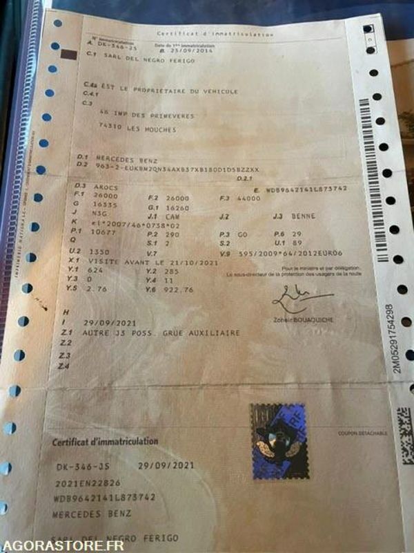 Mercedes-Benz Arocs 2640 Axle number: 3 FR: Type de véhicule Camion grue IMPORTANT: VENTE EN L'ETAT Très bon état général Vendu avec benne preneuse Ref No:JW47852
