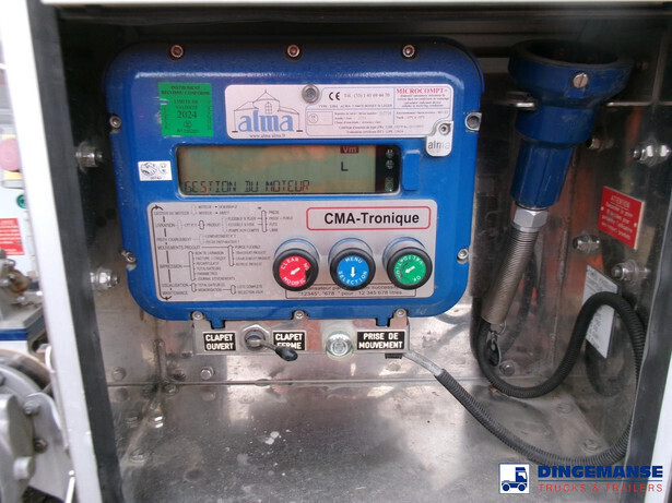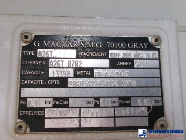 Magyar aluminium fuel tank, Capacity 13831 litres, 4 Compartments (2165; 4217; 4237; 3212), Hydraulic discharge pump, Alma digital flow meter, Hose reel, Vapour recovery, Overload sensor, ADR tank code LGBF, Tank material code EN AW 5182, Truck Euro 5, AdBlue, 4x2, Full air suspension, Manual gearbox (8 gears), Tyres 315/80R22.5, Day cabin, Air conditioning, Volvo Engine Brake, Shipment dimensions 720x250x330 cm