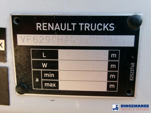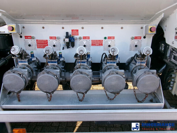 Magyar aluminium fuel tank, netto capacity 19094, Nominal capacity 18000 liters, 5 Compartments Net: 2165; 4237; 4711; 4771; 3210 // Nominal: 2000; 4000; 4500; 4500; 3000, Tank material code EN AW 5182, Test pressure 0.35 bar, Max working pressure 0.12 bar, Mouvex hydraulic discharge pump, Digital counter, Hose reel, Vapour recovery, Overload sensor // Truck 6x2, Euro 5, Dxi engine, Manual gearbox with 8 gears, Adblue, Diff. lock, Full air suspension, 3rd axle steering axle, Day cabin, Airconditioning, Digital tachograph, Shipment dimensions 890x250x350 cm.