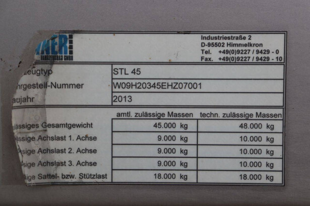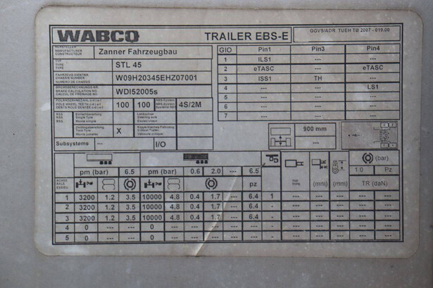 Tyres: Front left: 4.37 mm Front right: 10.95 mm Left center: 10.34 mm Right center: 5.21 mm Left rear: 6.76 mm Right rear: 4.47 mm Machine description: Used, operational trailer and immediately ready for use.