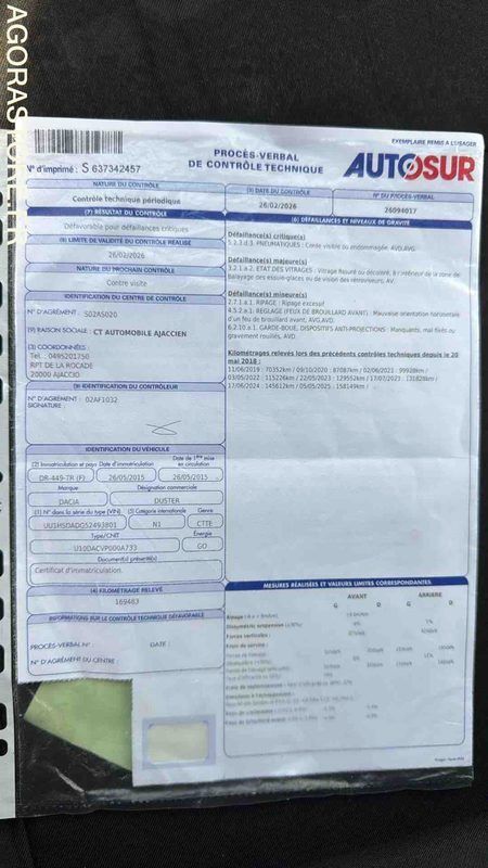 Obtenez un rapport d'inspection détaillé pour 2015 Dacia DUSTER et achetez en toute tranquillité d'esprit.