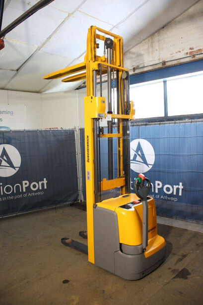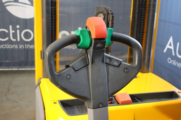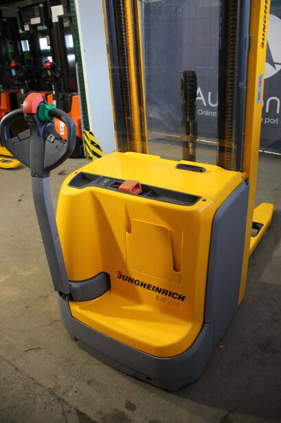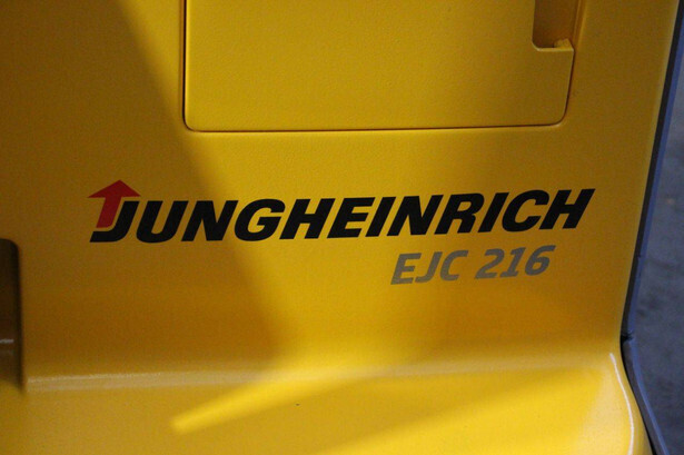 Brand: Jungheinrich Type: EJC 216 Serial number: 90409795 Year of construction: 2015 Fuel: Electric Mast type: Duplex Lifting capacity: 1600 kg Lifting height: 5250 mm Drive-through height: 2250 mm Operating hours read: 1300 h Machine weight: 1287 kg Color: yellow