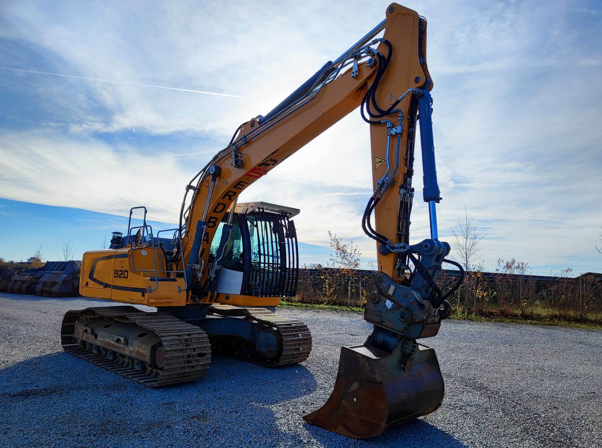 Liebherr R920 Weight around ca 20,800 kg Engine / Type Liebherr D834 Power / HP / KW 124 / 95 Emission standard Stage IIIB Boom / type Mono Length of stick 2,700mm Hydraulic lines Hammer-, Grapple-, Crusherlines Undercarriage in % good ca 50% good Shoes in mm 750mm Attachments (content ca. / Type) Bucket Quick coupler (brand) Likufix SWA 48 Aircondition Aircondition Central lubrication Central lubrication CE-certificate CE certified Location Plattling, Germany Transport-dimensions L/W/H 8,950 x 3,000 x 3,030