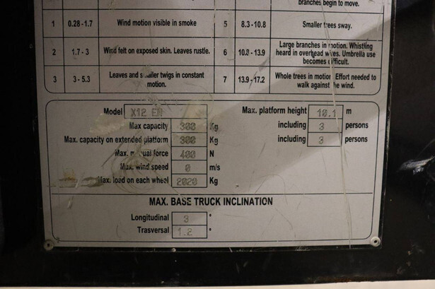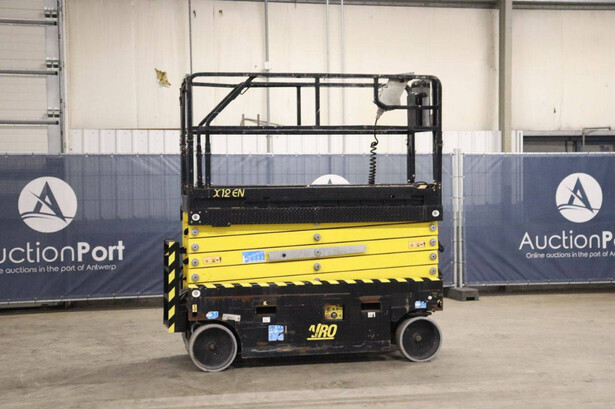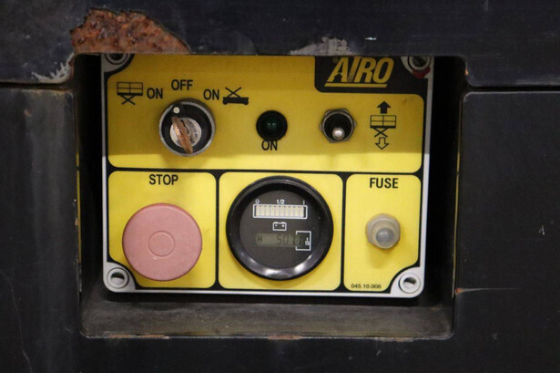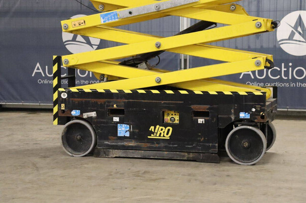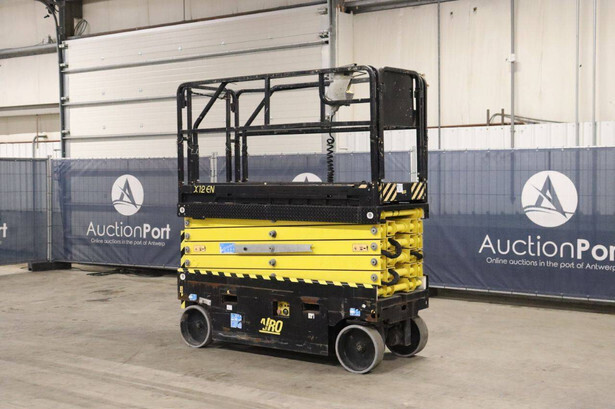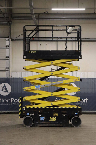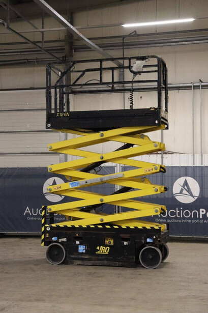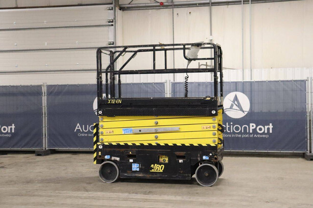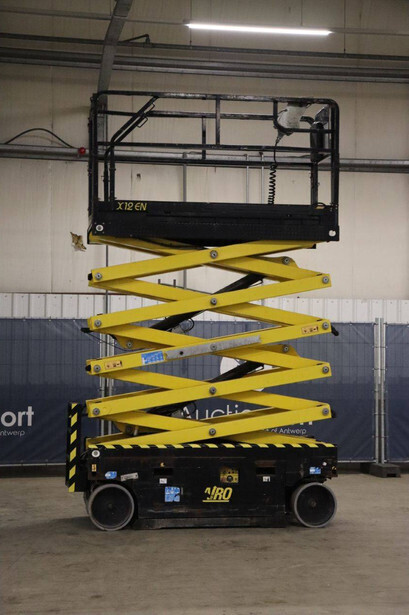 Brand: Airo Type: X12 EN Serial number: SF225744 Year of construction: 2016 Fuel: Electric Lifting capacity: 300 kg Working height: 12.1 m Operating hours read: 507 h Chassis: Wheels Type: Scissor lift Tires: Non-marking tires Color: yellow