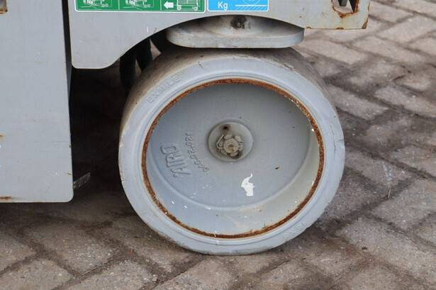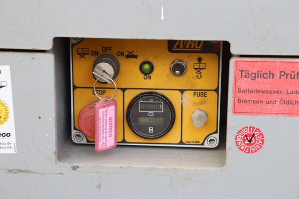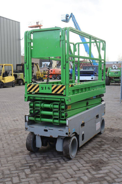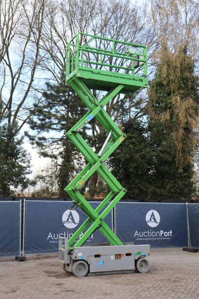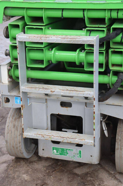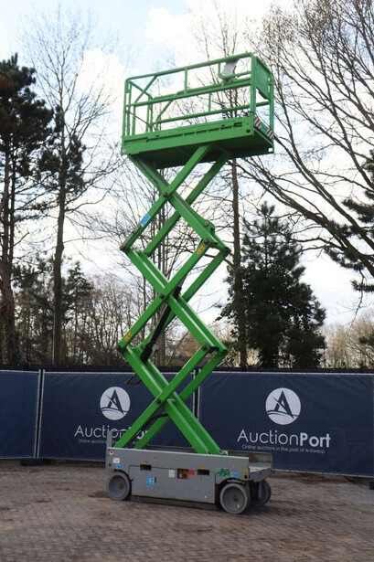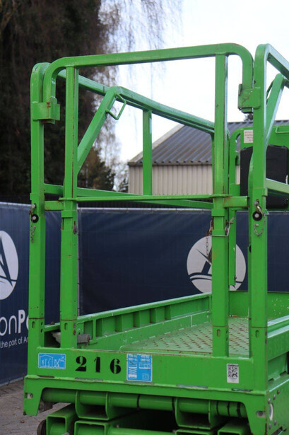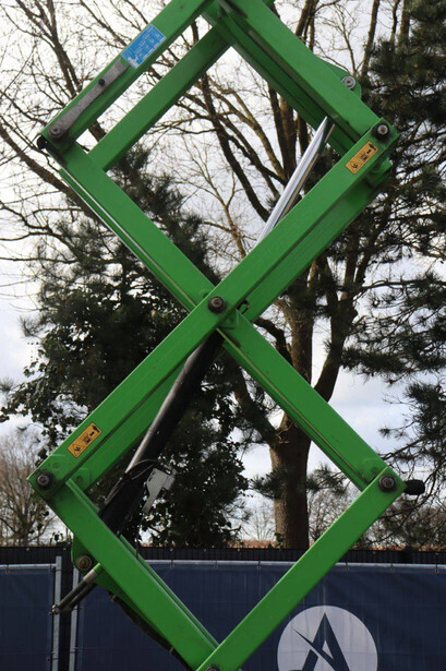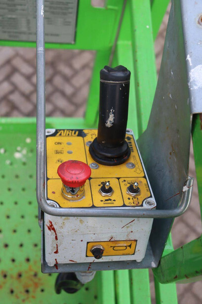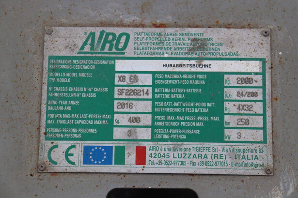 Brand: Airo Type: X8 EN Serial number: SF226214 Year of construction: 2016 Fuel: Electric Lifting capacity: 400 kg Working height: 8.30 m Recorded operating hours: 446 h Machine weight: 2000 kg Undercarriage: Wheels Type: Scissor lift Tires: Non-marking tires Color: green