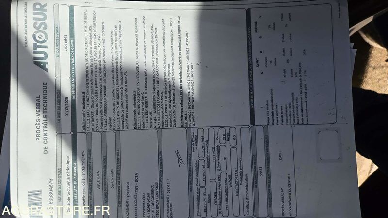 FR: Type de véhicule FOURGONNETTE IMPORTANT: Véhicule à retirer obligatoirement sur plateau Nb portes: 5 Transmission: AVANT Version: 1.6 BHDI Type de boîte de vitesses: SEM-AUT Véhicule NON roulant Moteur tournant Voir rapport d'inventaire en pj pour plus de détails