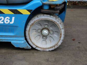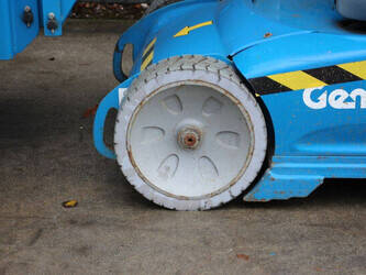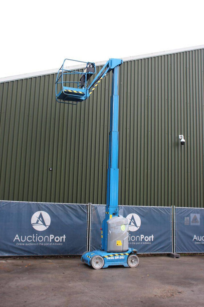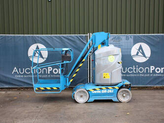 Brand: Genie Type: GR-26J Serial number: GRJ16L-1241 Year of construction: 2016 Fuel: Electric Lifting capacity: 200 kg Working height: 9.9 m Operating hours read: 335 h Machine weight: 2651 kg Chassis: Wheels Type: Mast lift Tires: Solid tires Color: blue