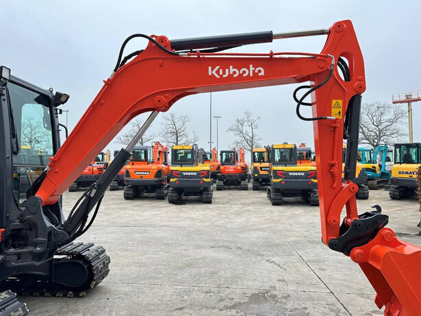 Brand: Kubota Type: KX163-5 Serial number: JKUK1635V00W64426 Year of construction: 2016 Fuel: Diesel Engine brand: Kubota V2607-DI Engine power: 48 HP Number of cylinders: 4 Quick change: No Operating hours read: 3646 h Machine weight: 5690 kg Undercarriage: Tracks 400mm Tray width: 650mm Transport dimensions: 5600x2000x2600mm Color: red