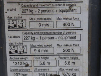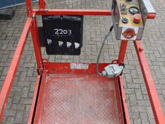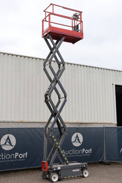 Brand: Skyjack Type: SJ III 3219 Serial number: 22091963 Year of construction: 2016 Fuel: Electric Lifting capacity: 227 kg Working height: 7.8 m Operating hours read: 355 h Machine weight: 1312 kg Chassis: Wheels Type: Scissor lift Tires: Non-marking tires Color: red