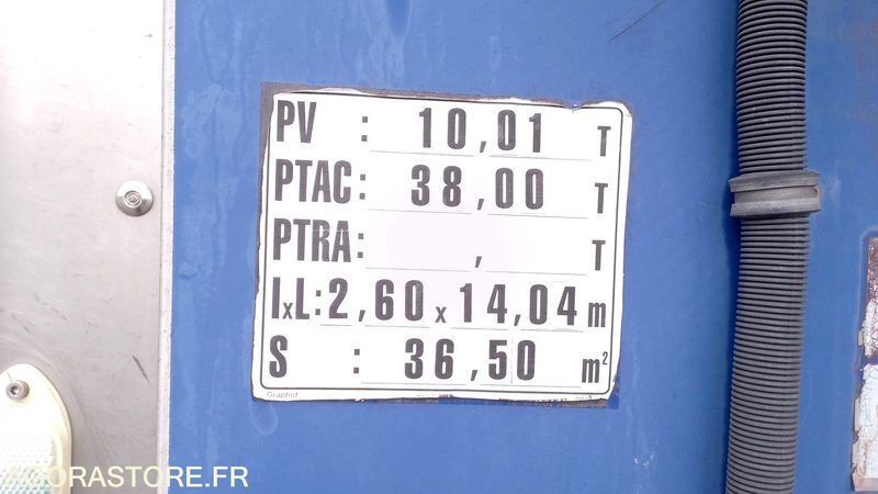 LeciTrailer LTF 3ES Axle number: 3 Axle 1 common tyre size: 385/65R22.5 FR: Type de remorque: Semi-remorque marque: LECITRAILE Véhicule roulant Hayon Etat correct Un rapport d'inventaire est disponible en suivant le lien ci-dessous https://rapport-trustoo.web.app/0dc72fb5-36b9-4f40-89f7-9e1087e3d024/details Ref No:ND49315 VIN: VV1F3XA1ASN172880