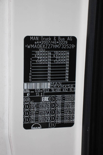 Brand: MAN Type: TGX 18.480 Chassis number: WMA06XZZ7HM732528 Year of construction: 2017 Fuel: Diesel Engine power: 480.0 HP Transmission: Automatic Euro standard: Euro 6 Odometer reading: 770679 KM Number of axes: 2 Color: white