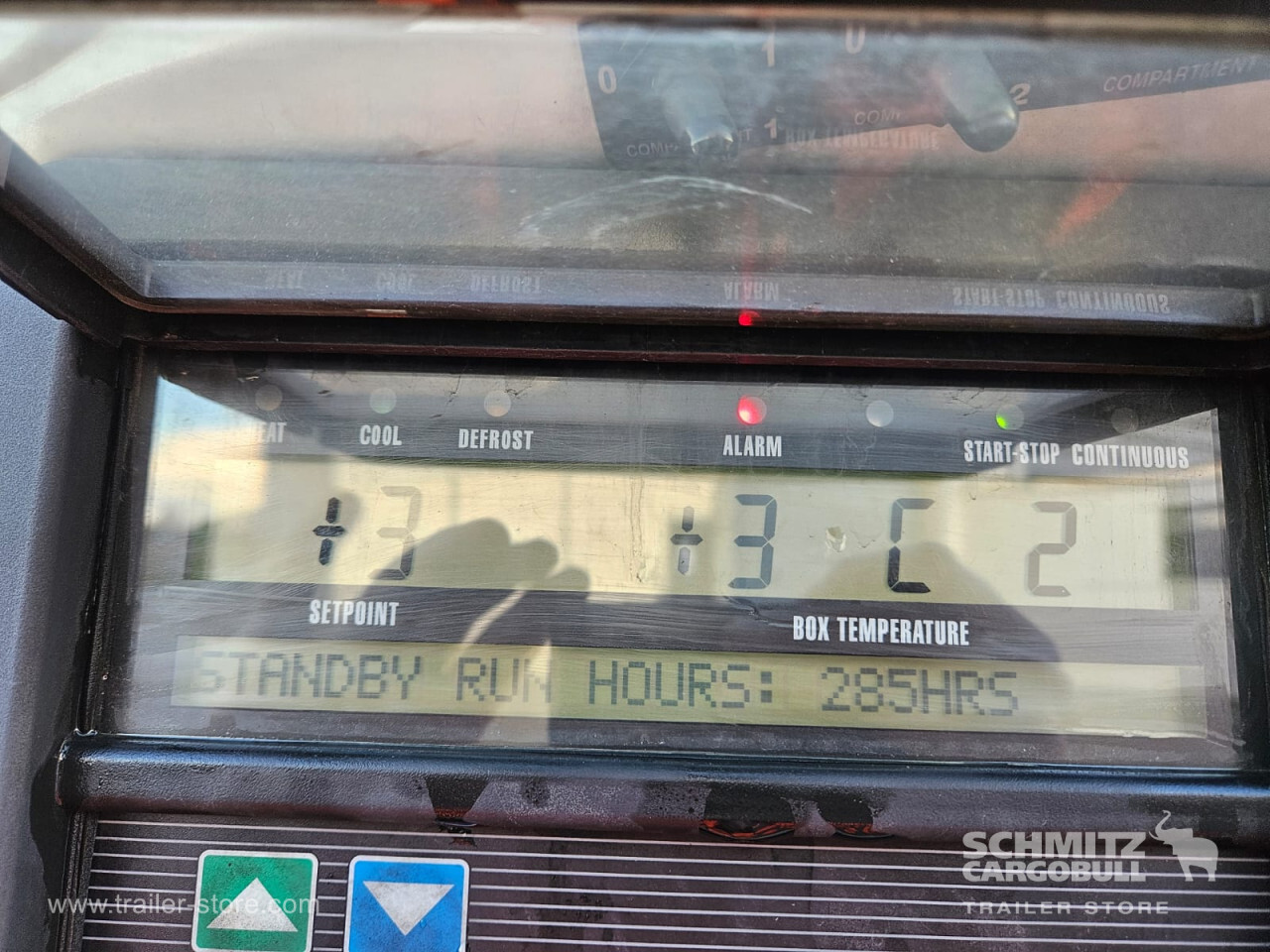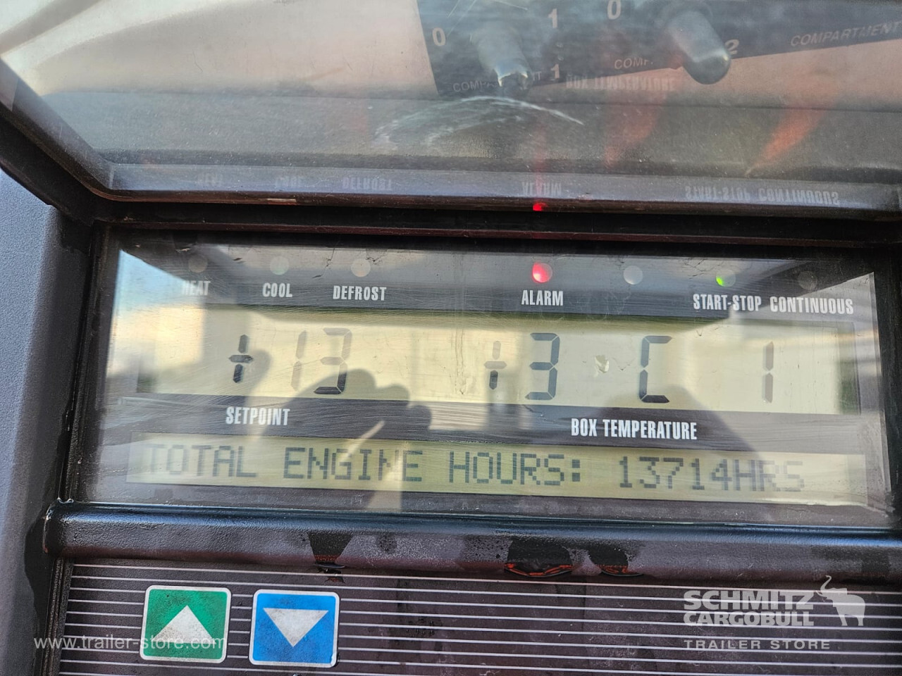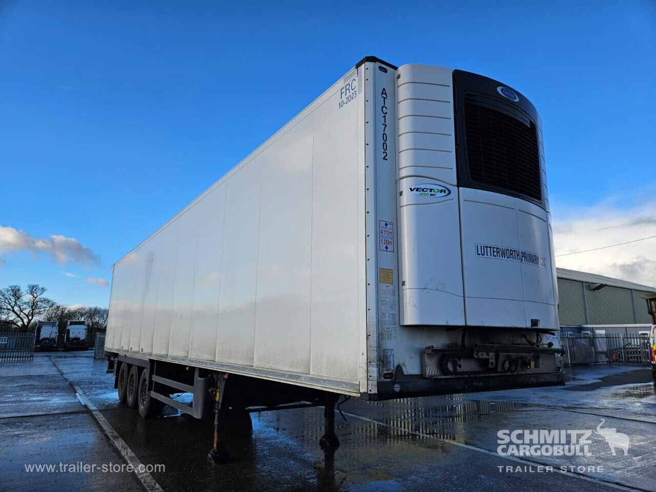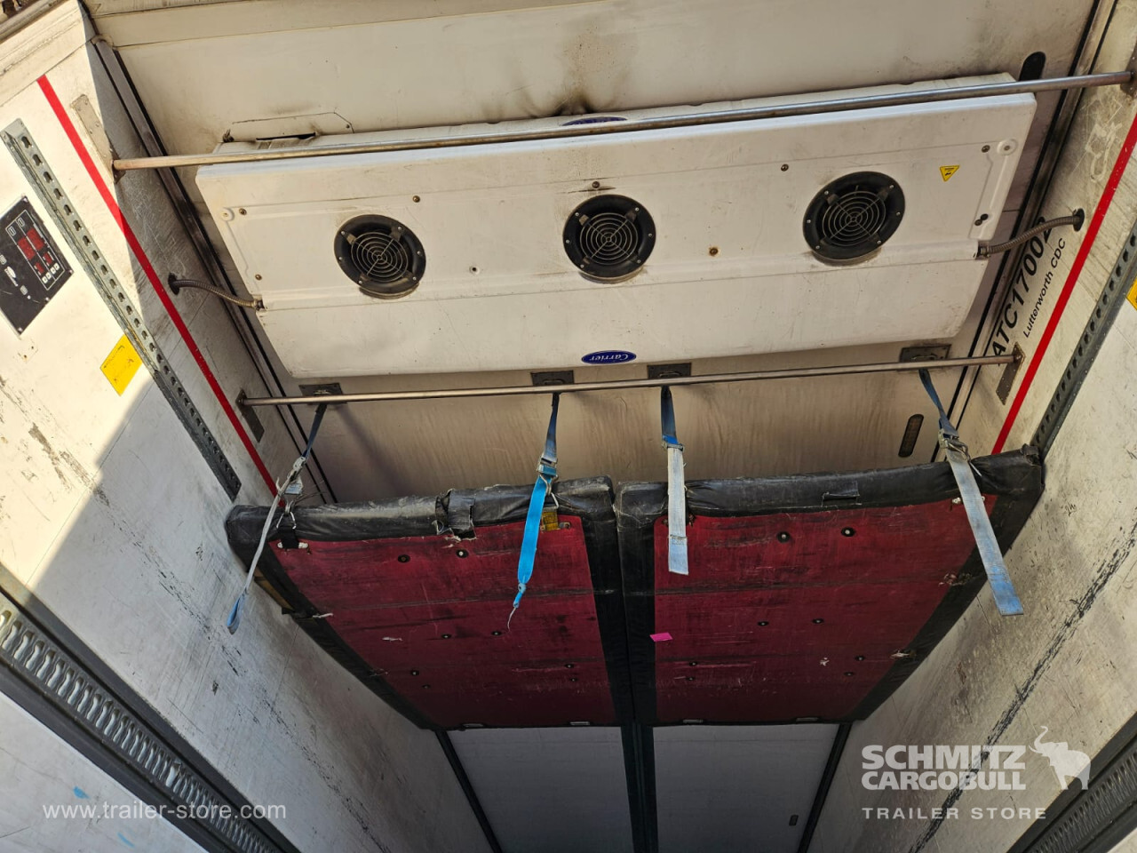 **Safety**\\Rear underrun, Antilock Braking System ABS\\\\**Exterior**\\Air suspension, 1x15 and 2x7 pin plug, Antispray\\\\**Cargo securing**\\Load securing rail\\\\**Brake system**\\Disc brake, Schmitz ROTOS\\\\**Floor**\\Aluminum floor\\\\**Cooling unit**\\Carrier Vector 1950 MT, Diesel/Elektro, 13.714 Operating hours Diesel\\\\**Loading area**\\Length 13.620 mm, Width 2.490 mm, Height 2.600 mm, Volume 88 m³\\\\**Tyre sizes**\\ 385/65 22.5 , 385/65 22.5 , 385/65 22.5\\\\**Other dimensions and weights**\\Payload: 30.300 kg, GVW: 39.000 kg\\\\----