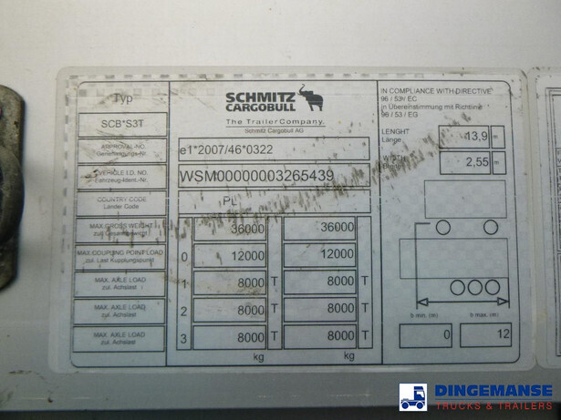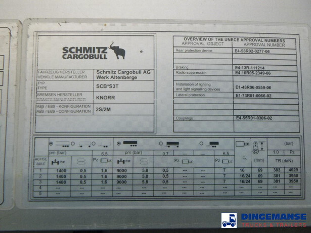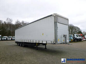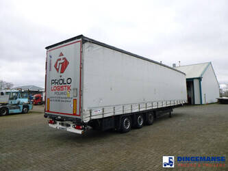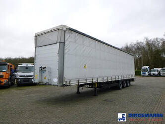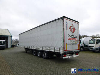 3-axle Mega curtain side trailer with sliding roof, Internal dimensions : 1360x248x300 cm (approx. 101 m3),Floor height 90 cm, Max. gross trailer weight 39000 kg, Schmitz axles, Air suspension, Lift axle (1st), Disc brakes, Shipment dimensions 1400x250x400 cm.