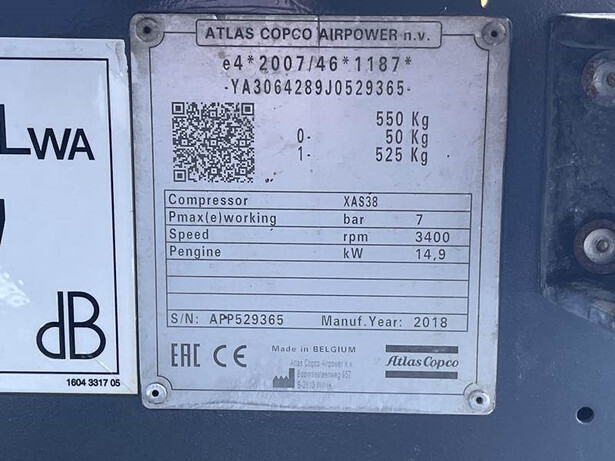 Obtenez un rapport d'inspection détaillé pour 2018 Atlas-Copco XAS38KD et achetez en toute tranquillité d'esprit.