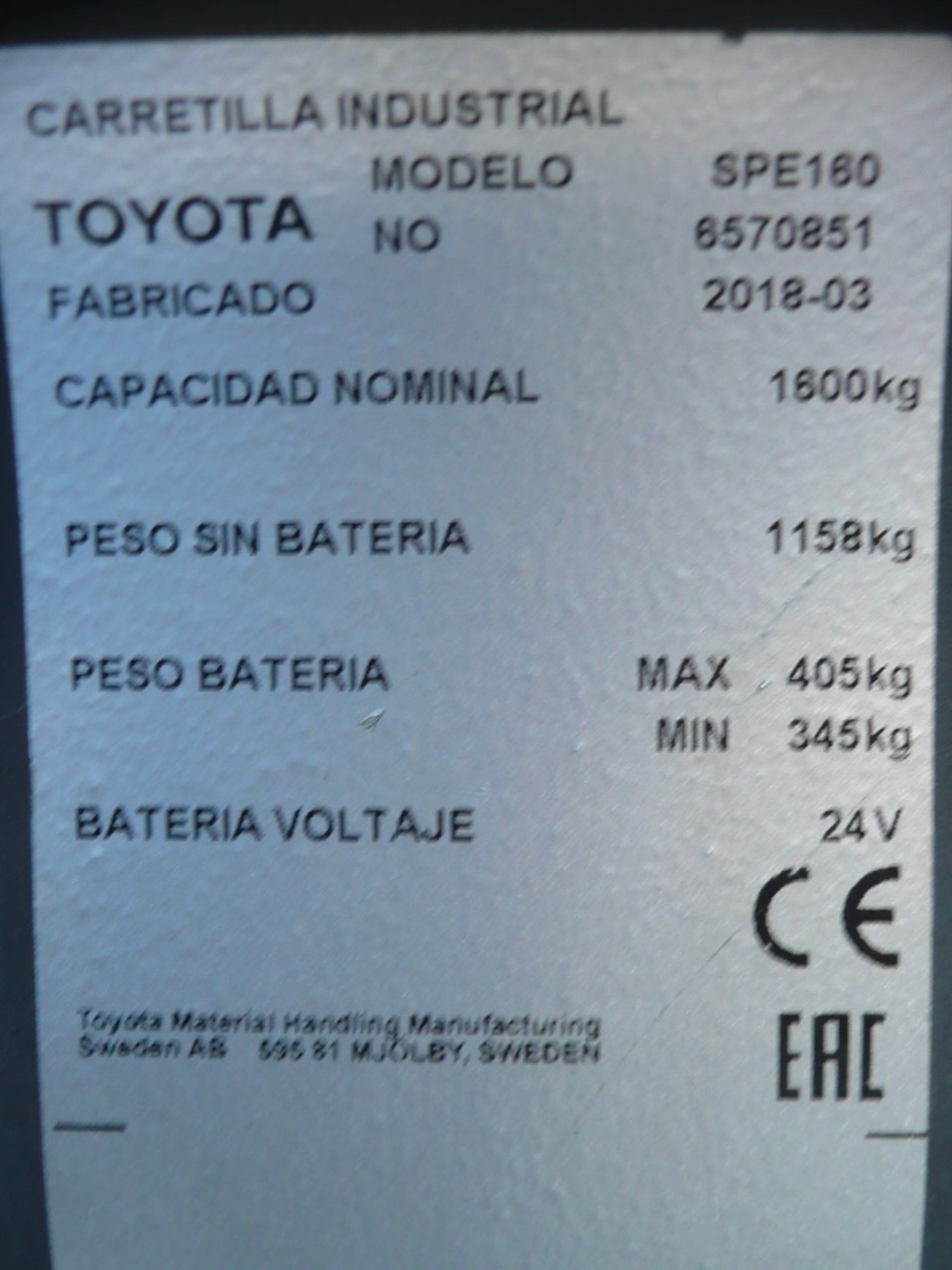 BT SPE 160 Load capacity: 1.600 Kg Lifting height: 3.300 mm Mast: Triplex Fork: 1.150 x 570 mm Build height: 1.660 mm Motorization: Electric Battery: 24v/500Ah Charger: 24 v Good condition, Electric steering wheel, Foldable platform. Reference number: 7238