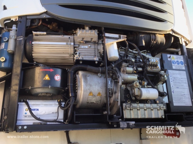 Remarks: **Safety**\\Fixed rear underrun, Antilock Braking System ABS\\\\**Interior**\\Temperature recorder, Double deck with beams\\\\**Exterior**\\Air suspension, Pallet box (double), Spare wheel carrier, Ferry lashings, 1x15 and 2x7 pin plug, Customs sealing capability\\\\**Brake system**\\Disc brake, Schmitz ROTOS\\\\**Floor**\\Aluminum floor\\\\**Roof**\\Aluminum roof\\\\**Cooling unit**\\Schmitz Cargobull S.CU 1.0, 12.019 Operating hours Diesel, 250 Operating hours electric\\\\**Loading area**\\Length 1.315 mm, Width 2.490 mm, Height 2.700 mm, Volume 9 m³\\\\**Tyre sizes**\\1. Achse: 385/65 R22.5 , Tread depth: 12 mm / 12 mm, 2. Achse: 385/65 R22.5 , Tread depth: 12 mm / 12 mm, 3. Achse: 385/65 R22.5 , Tread depth: 12 mm / 12 mm\\\\----