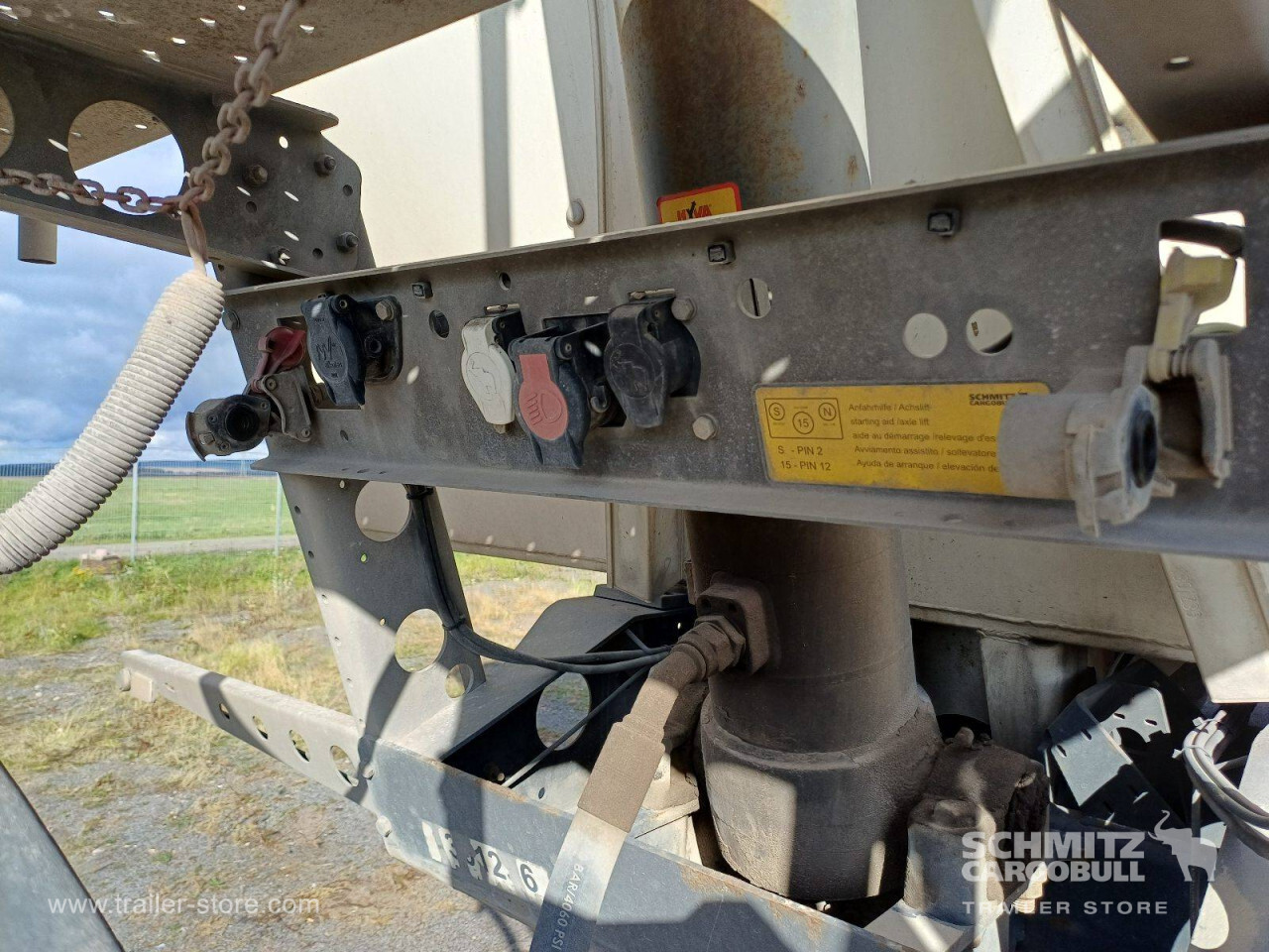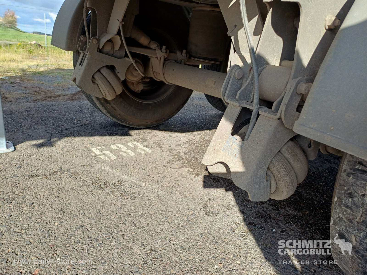 Remarks: **Safety**\\Hinged rear underrun, Antilock Braking System ABS\\\\**Exterior**\\Air suspension, Lift axle front, Exterior pendulum tailgate, Roof rolling tarpaulin, Access platform, 1x15 and 2x7 pin plug, Antispray, Light alloy rims\\\\**Brake system**\\Disc brake, Schmitz ROTOS\\\\**Loading area**\\Length 7.500 mm, Width 2.440 mm, Height 1.350 mm, Volume 24 m³\\\\**Tyre sizes**\\1. Achse: 385/65 R22.5 , Tread depth: 12 mm / 3 mm, 2. Achse: 385/65 R22.5 , Tread depth: 12 mm / 11 mm, 3. Achse: 385/65 R22.5 , Tread depth: 12 mm / 8 mm\\\\**Other dimensions and weights**\\GVW: 36.000 kg\\\\----