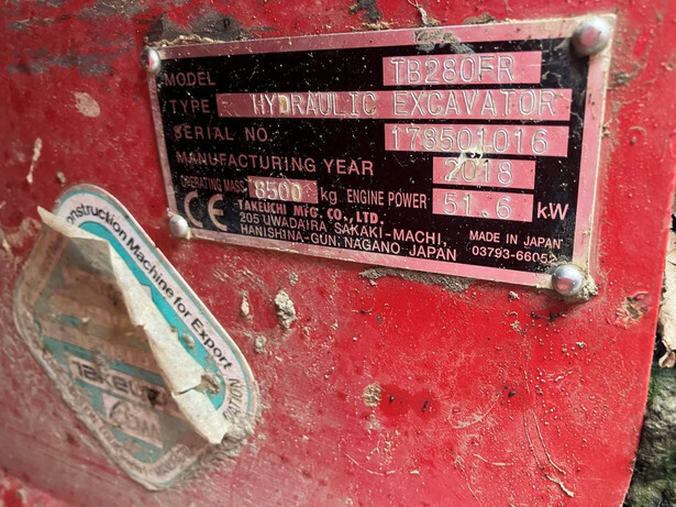 2018 TAKEUCHI TB280FR