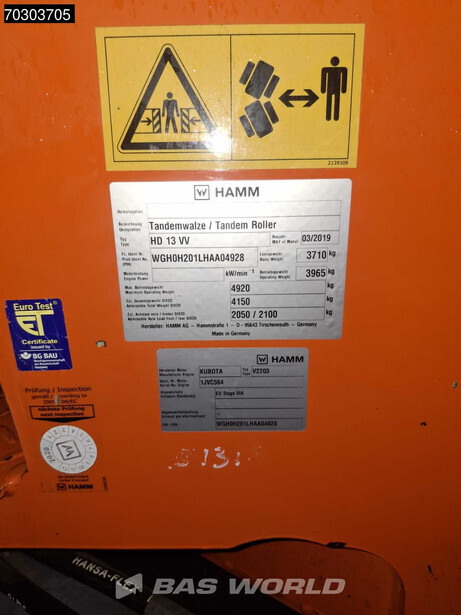 Obtenez un rapport d'inspection détaillé pour 2019 HAMM HD13 VV et achetez en toute tranquillité d'esprit.