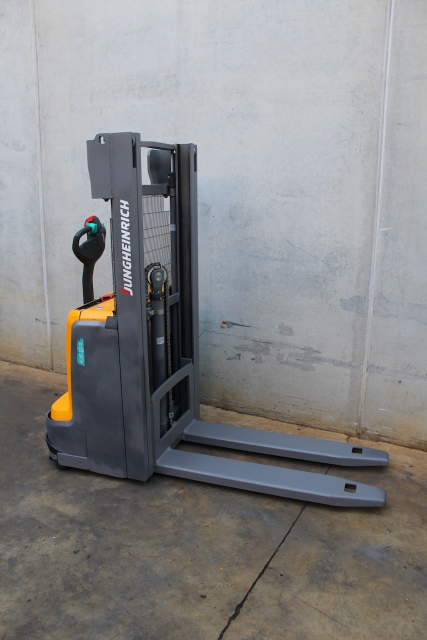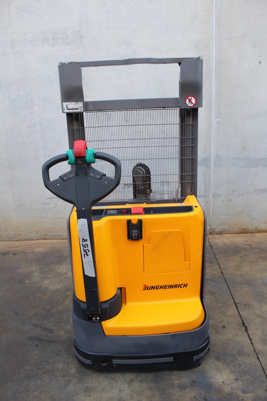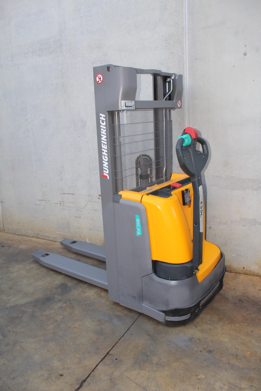 Jungheinrich EJC 110 250 ZZ Load capacity: 1.200 Kg Lifting height: 2.500 mm Mast: Free lift duplex Fork: 1.150 x 570 mm Build height: 1.710 mm Motorization: Electric Battery: 24v/150Ah Charger: 24 v Good condition. Reference number: 7558