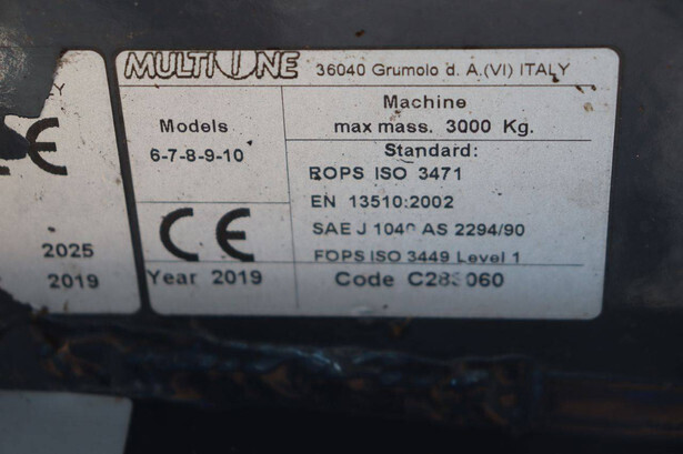Brand: Multione Type: 9.5 Serial number: M350929 Year of construction: 2019 Fuel: Diesel Operating hours read: 3300 h Machine weight: 3000 kg Tires: Pneumatic tires Color: blue