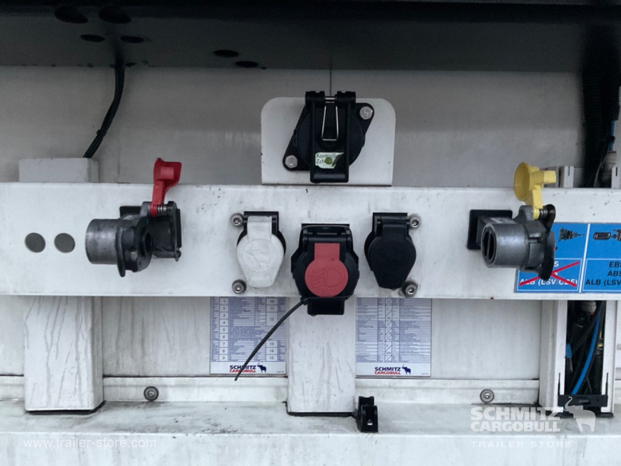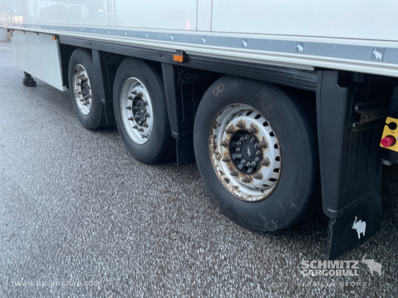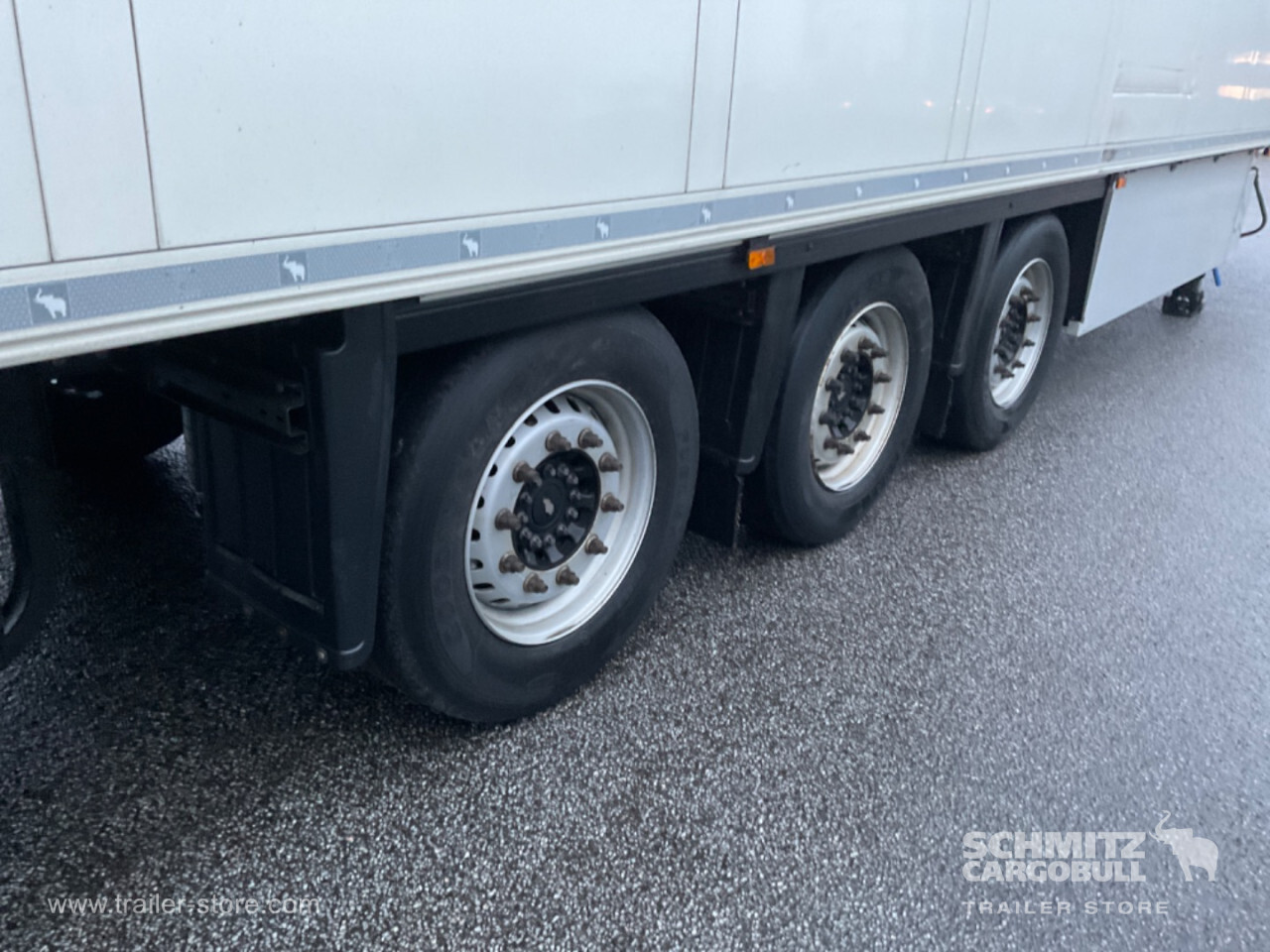 Remarks: **Safety**\\Fixed rear underrun, Antilock Braking System ABS\\\\**Interior**\\ISO partition wall without ventilators, Double deck with beams\\\\**Exterior**\\Air suspension, Pallet box (double), Spare wheel carrier, Ferry lashings, 1x15 and 2x7 pin plug, Antispray, Customs sealing capability\\\\**Brake system**\\Disc brake, Schmitz ROTOS\\\\**Floor**\\Aluminum floor\\\\**Cooling unit**\\Schmitz Cargobull, Diesel/Elektro, 22.948 Operating hours Diesel, 783 Operating hours electric\\\\**Loading area**\\Length 13.410 mm, Width 2.490 mm, Height 2.650 mm, Volume 88 m³\\\\**Tyre sizes**\\ 385/55 R22.5 , 385/55 R22.5 , 385/55 R22.5\\\\----